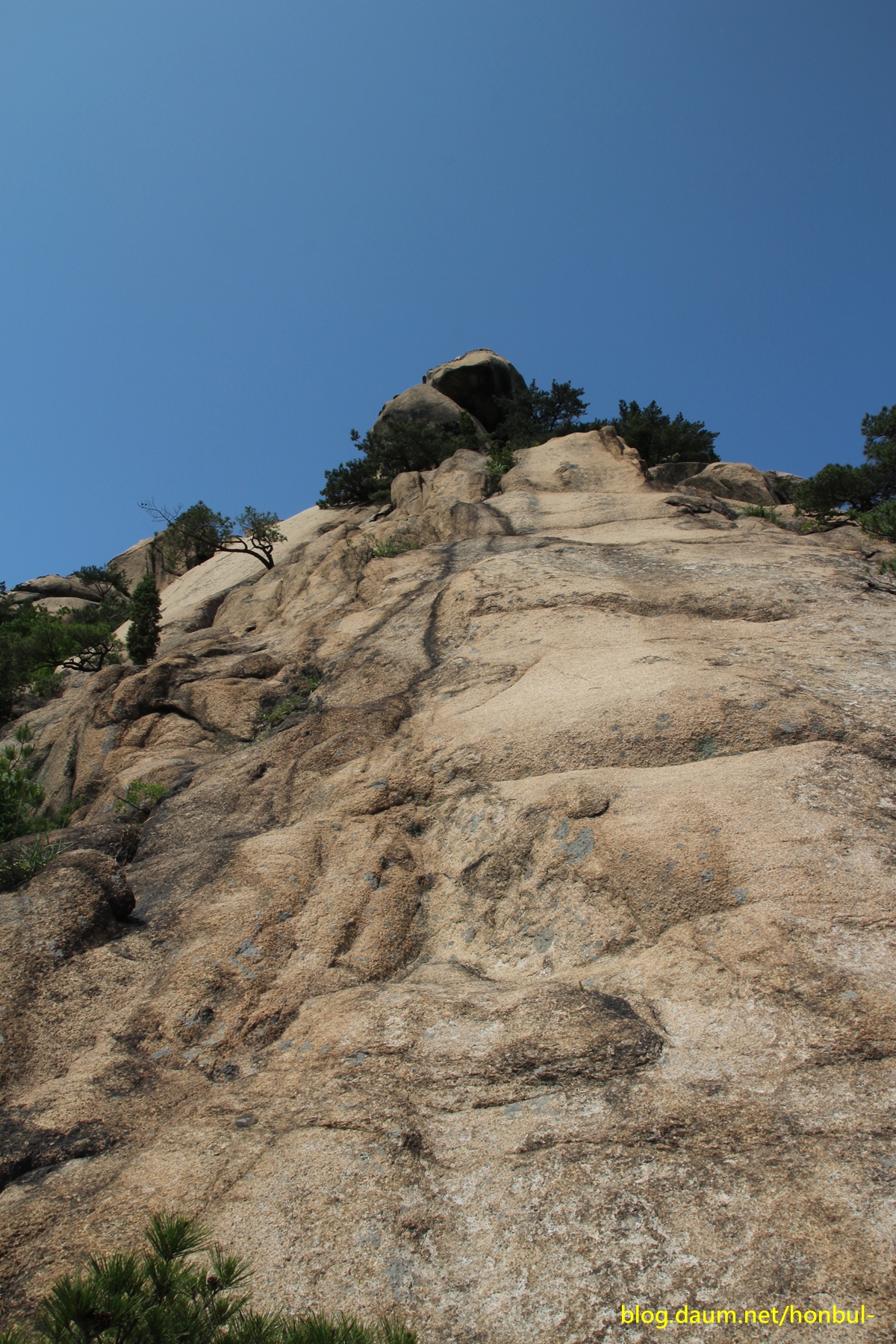 바로 이 사진이 로봇바위로 중간중간에 있는 나무로 바위 크기를 짐작할 수 있다.