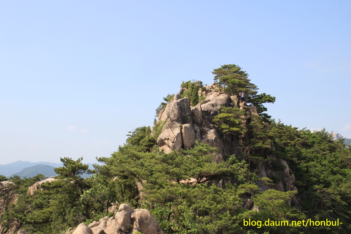 첫 번째 암봉을 우측 뒤로 올라왔다.