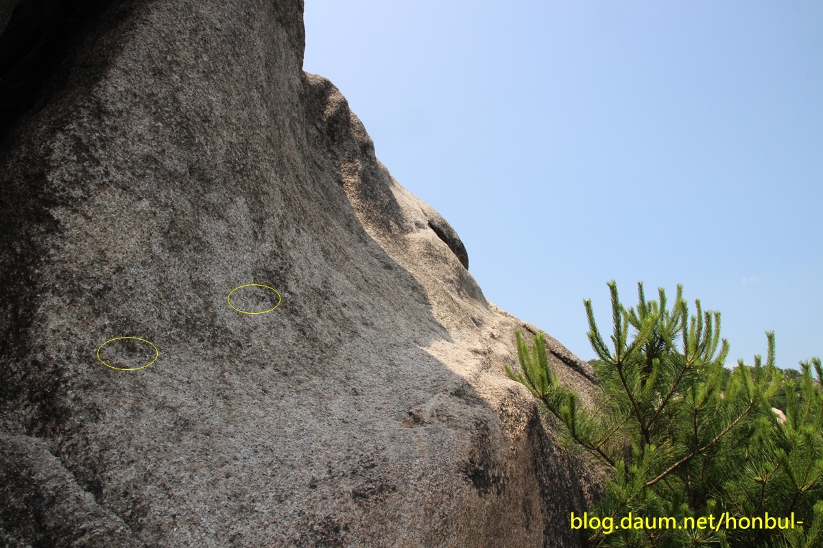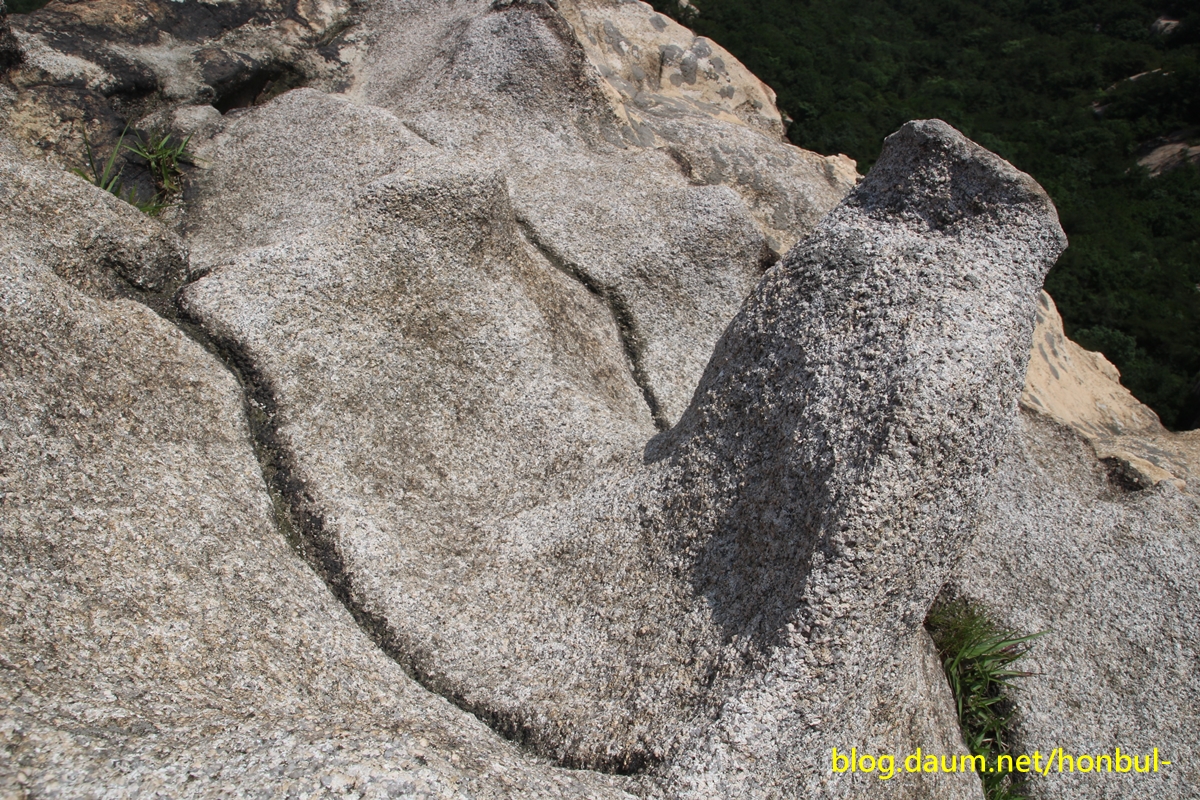 이 사진 정상에서 우측으로 홈이 일부 보이기도 한다.