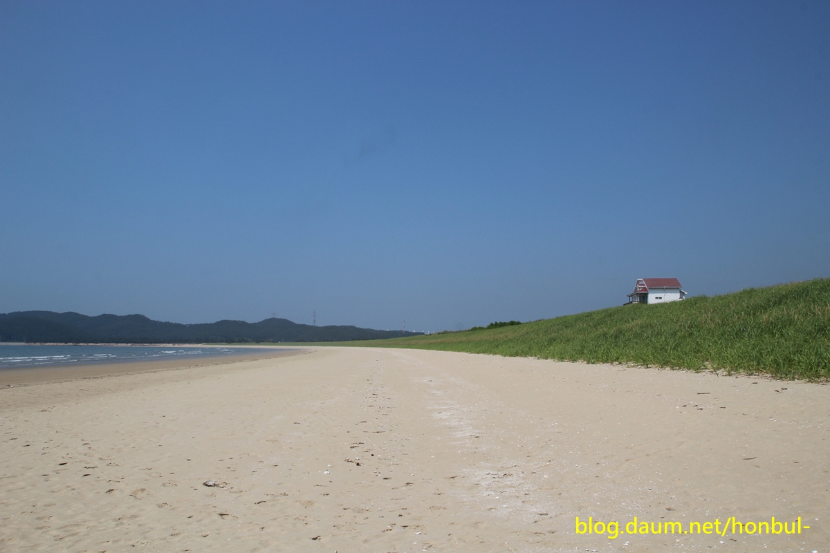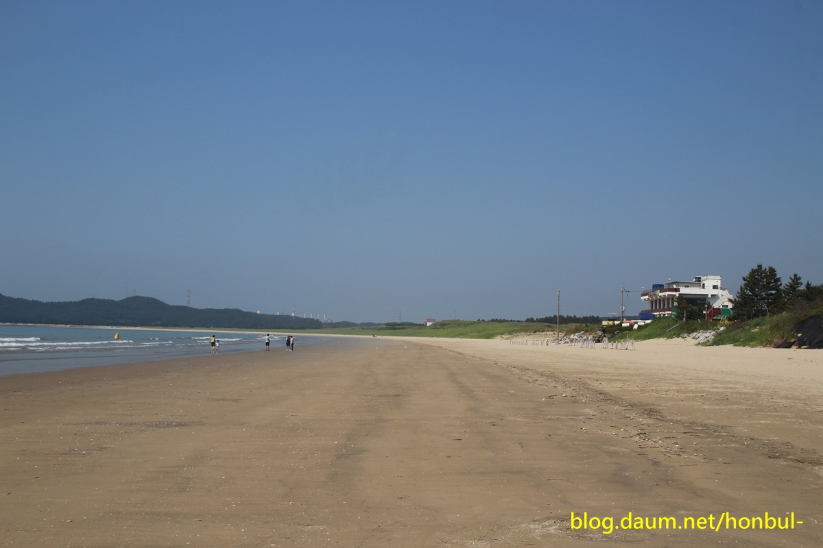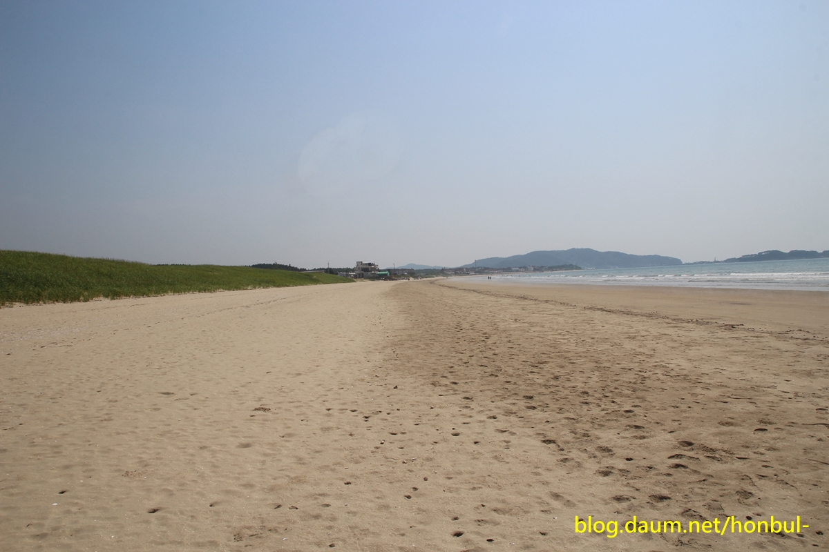 해수욕장 길이: 3㎞, 폭: 200m 정도, 고운 모래(규사)로 되어있다.