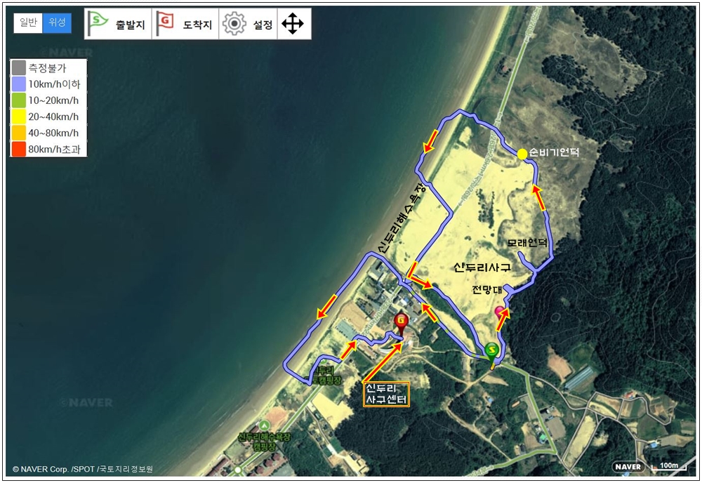 해안사구를 먼저 보고 해수욕장을 본 다음 다시 해안사구를 지난다.