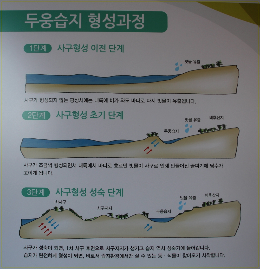 두웅습지는 사구 형성 초기를 거쳐 성숙기에 형성되는 전형적인 사구 배후습지이며,