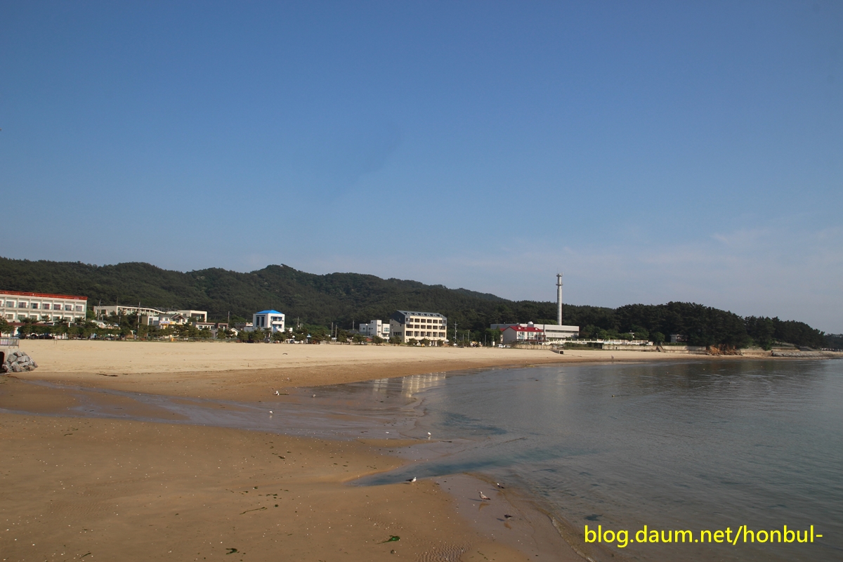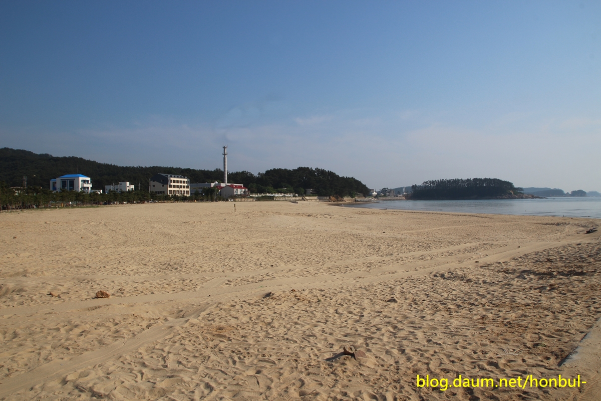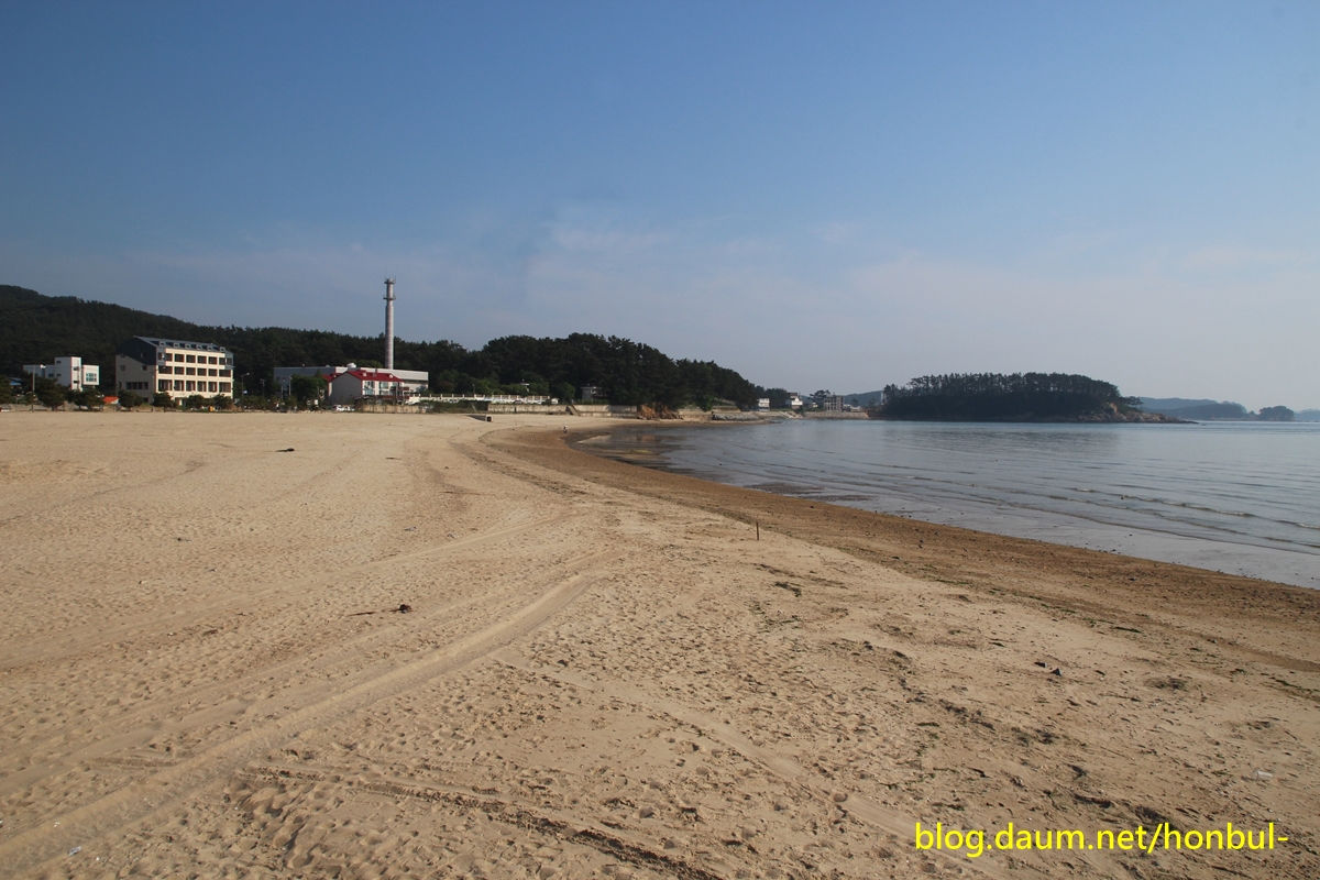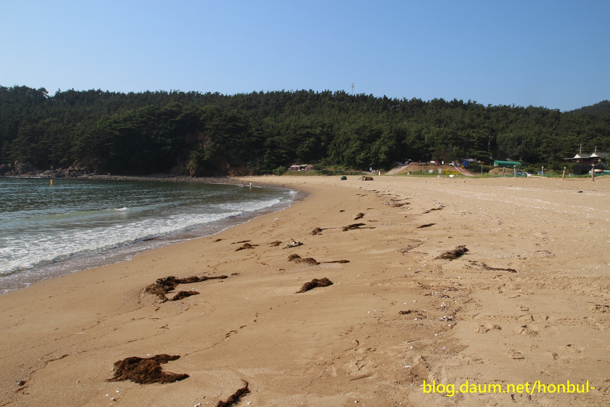 앞바다가 한 화면에 다 들어올 정도로 폭이 좁은 해수욕장이다.