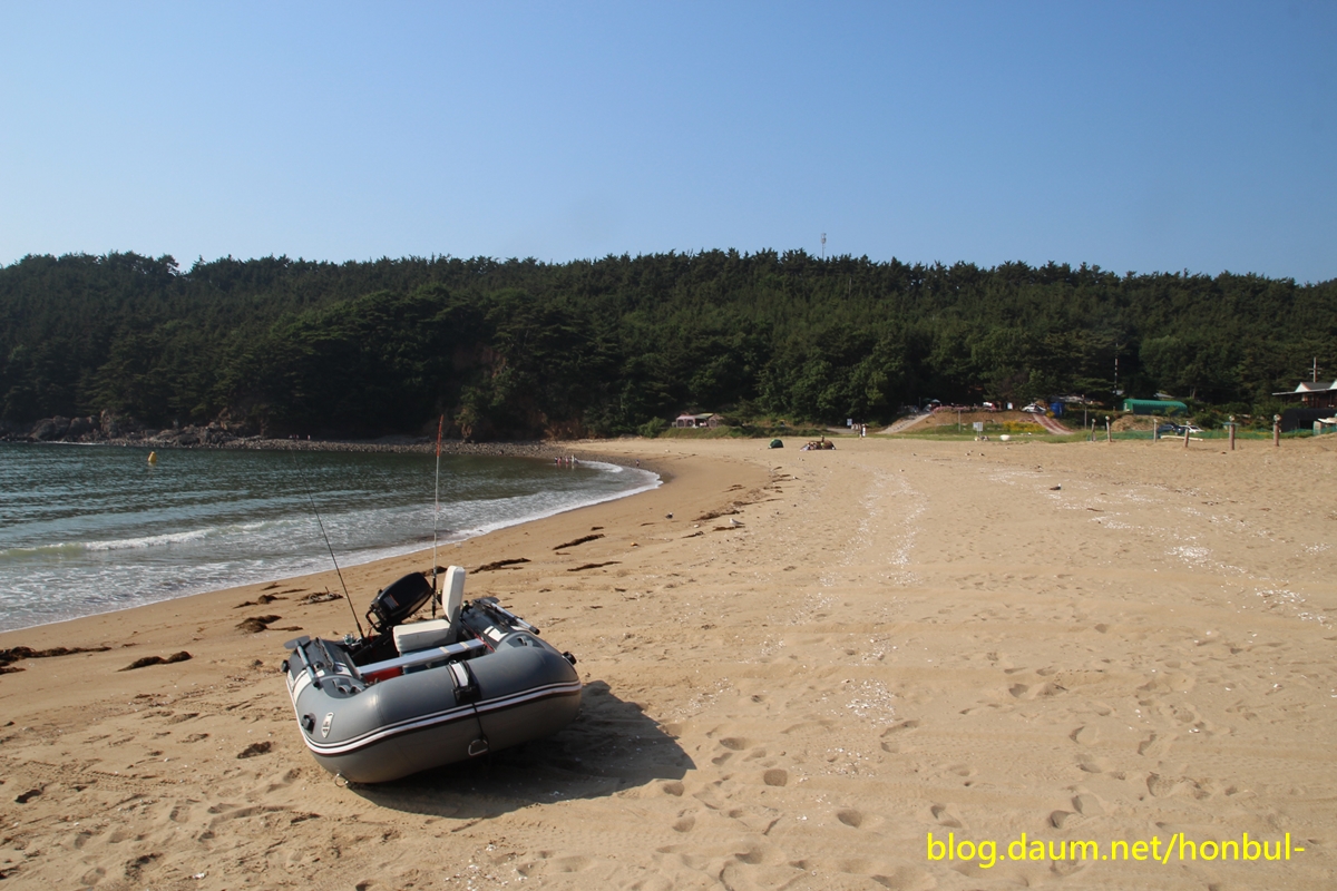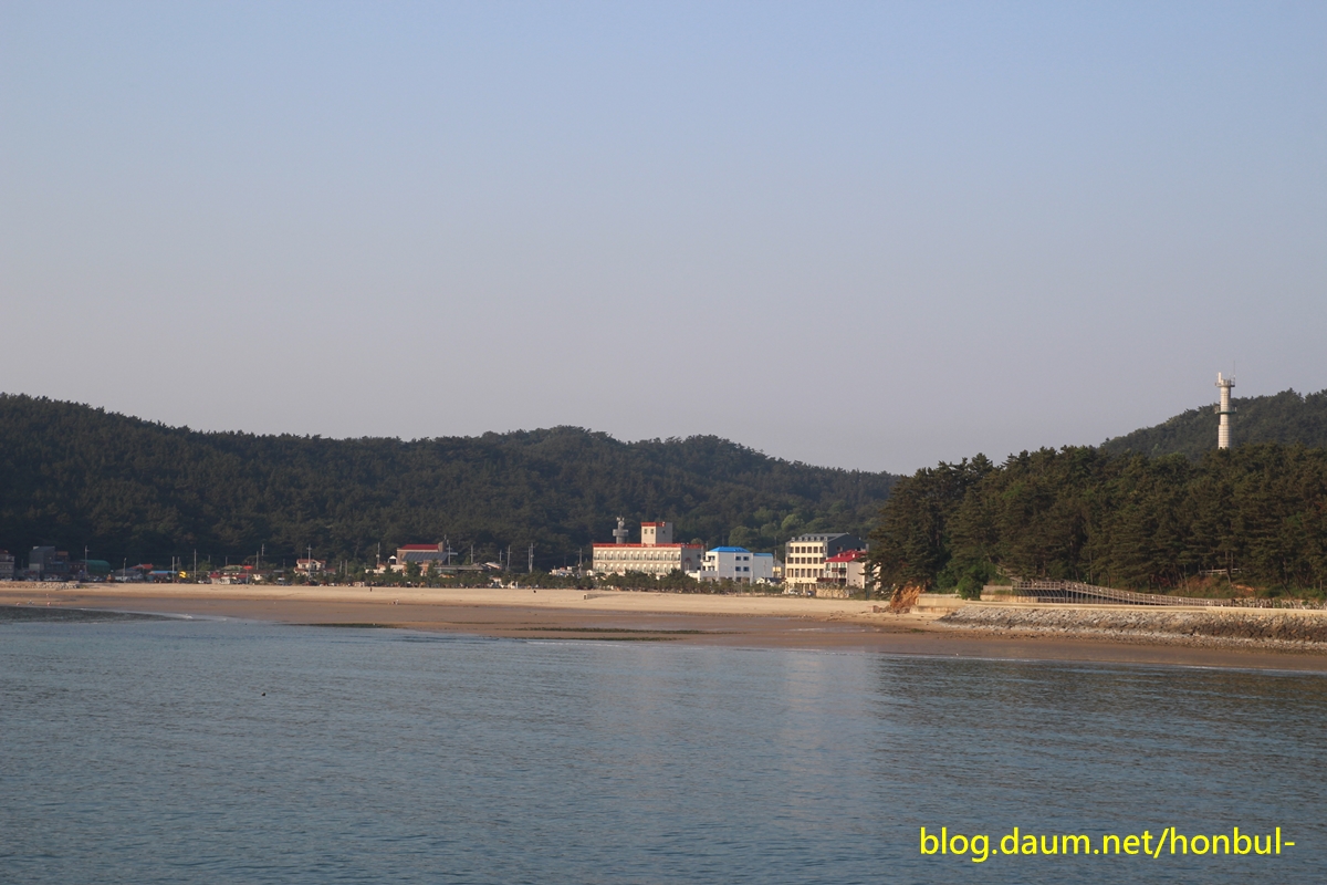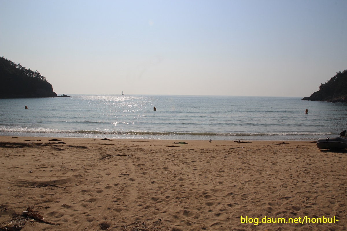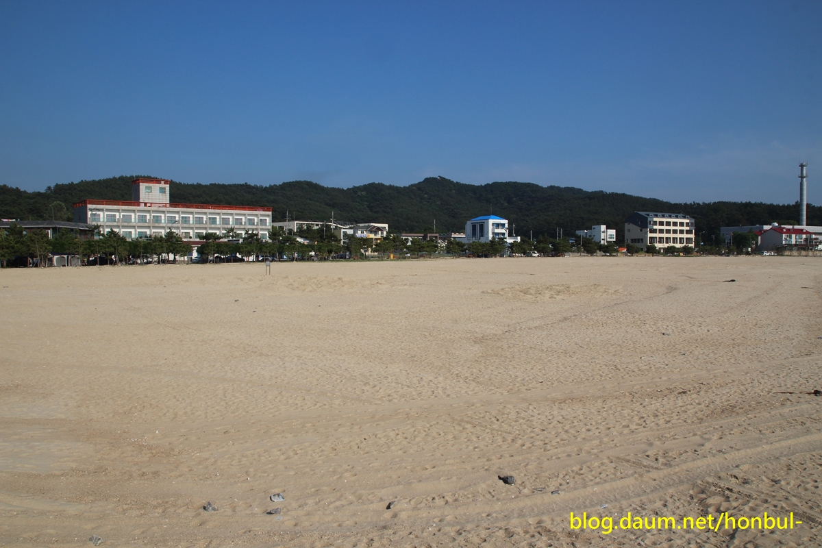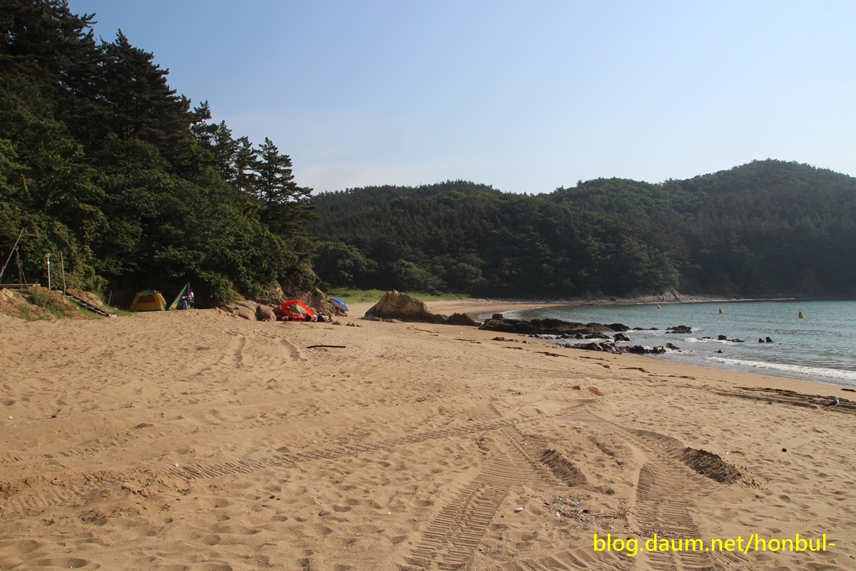 앞바다가 한 화면에 다 들어올 정도로 폭이 좁은 해수욕장이다.