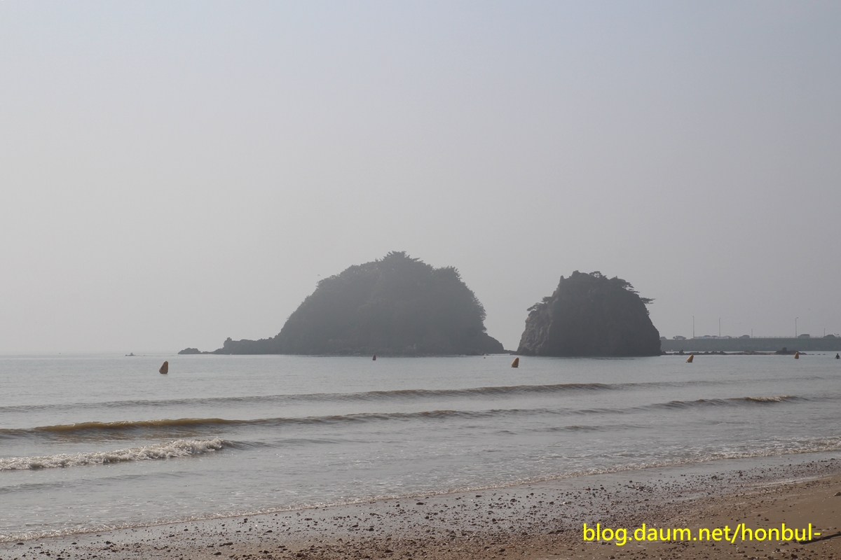 썰물 때면 두 바위가 마치 한 몸인 듯 모래톱으로 연결되는 모습을 볼 수 있다.