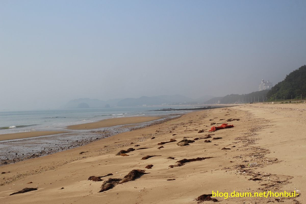 모래밭인 해수욕장을 20km 넘게 걷는다는 게 무척 고역이다.