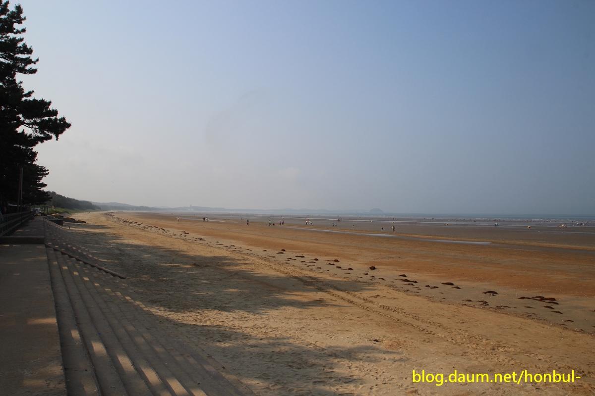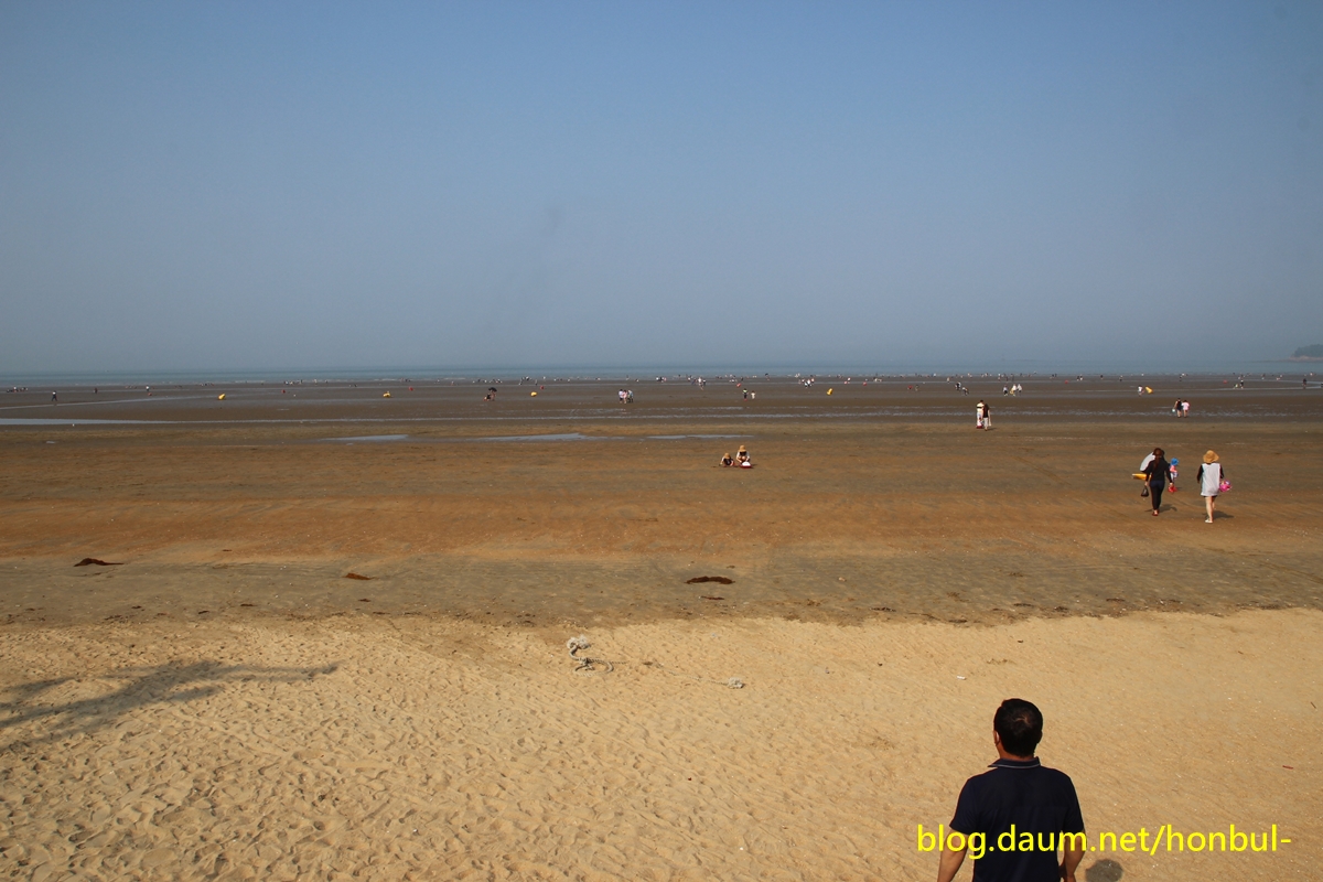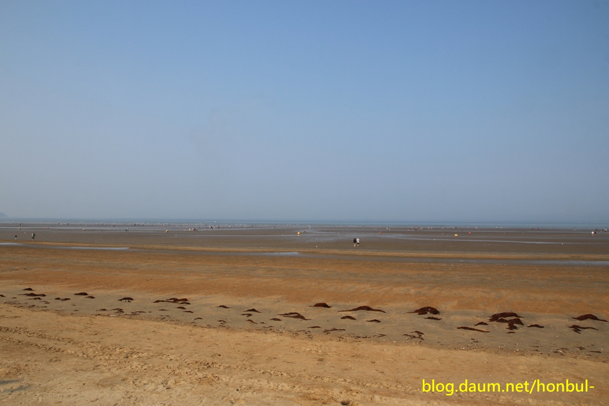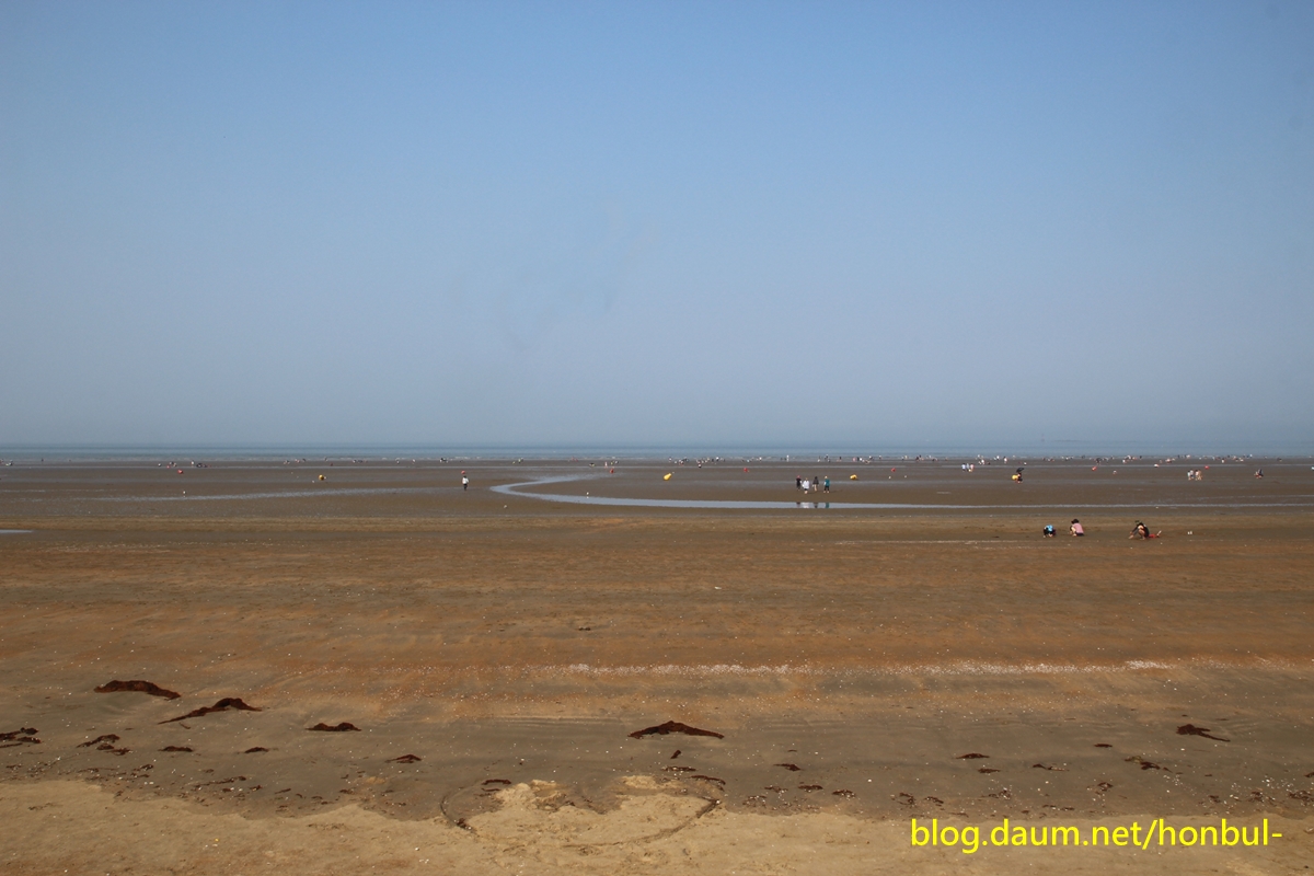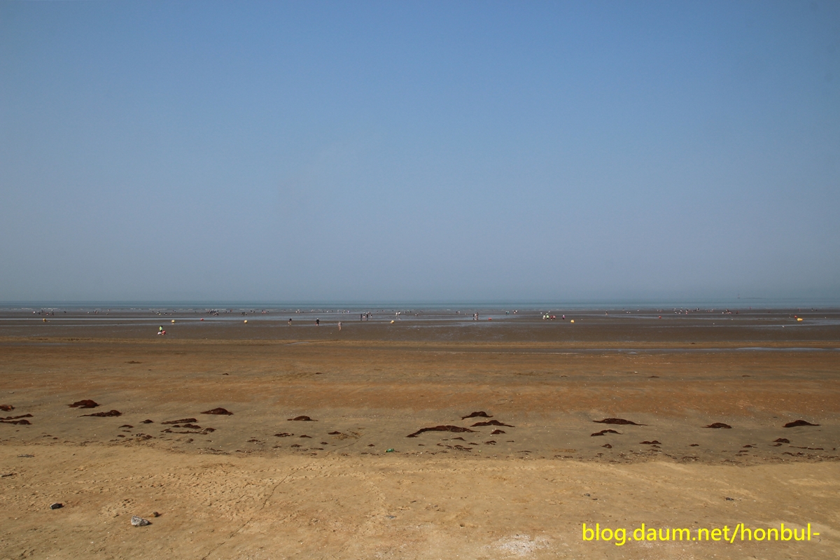 물 빠진 해수욕장은 지평선만 보일 정도로 넓다.