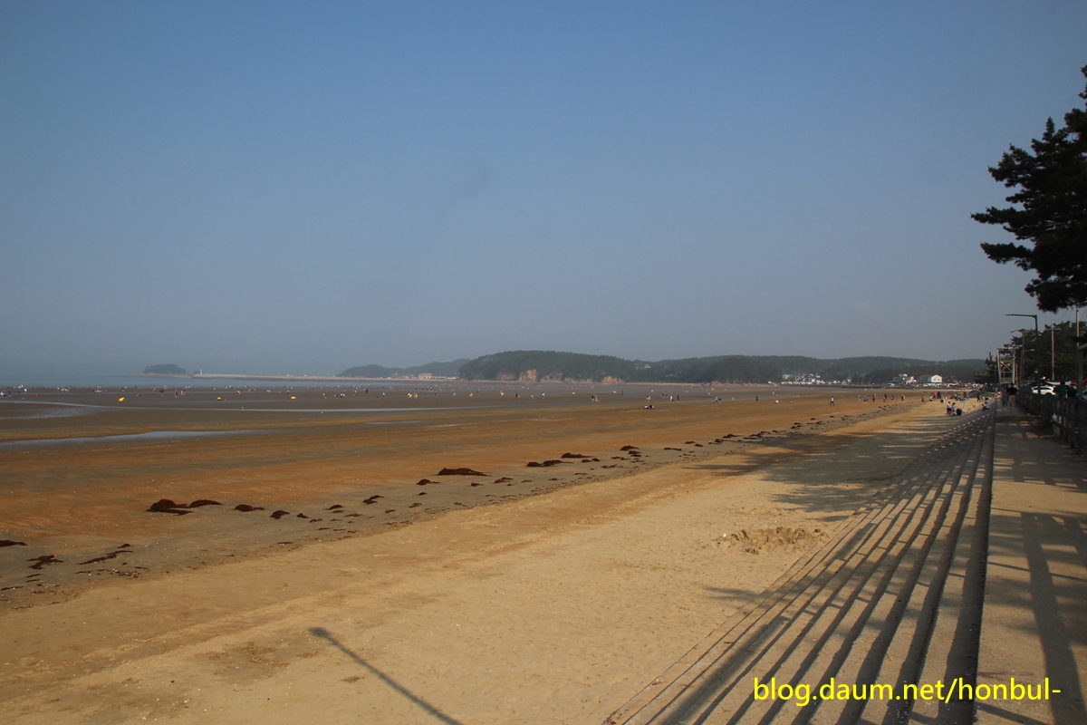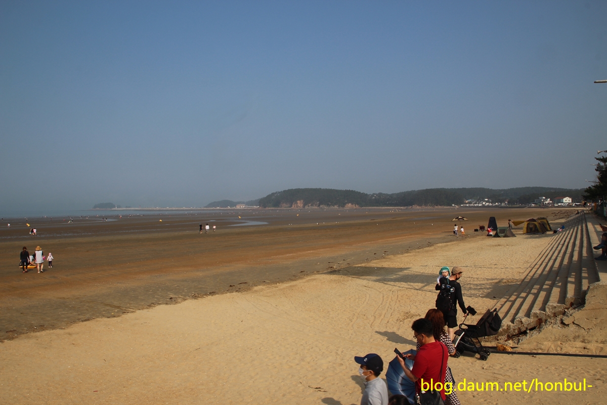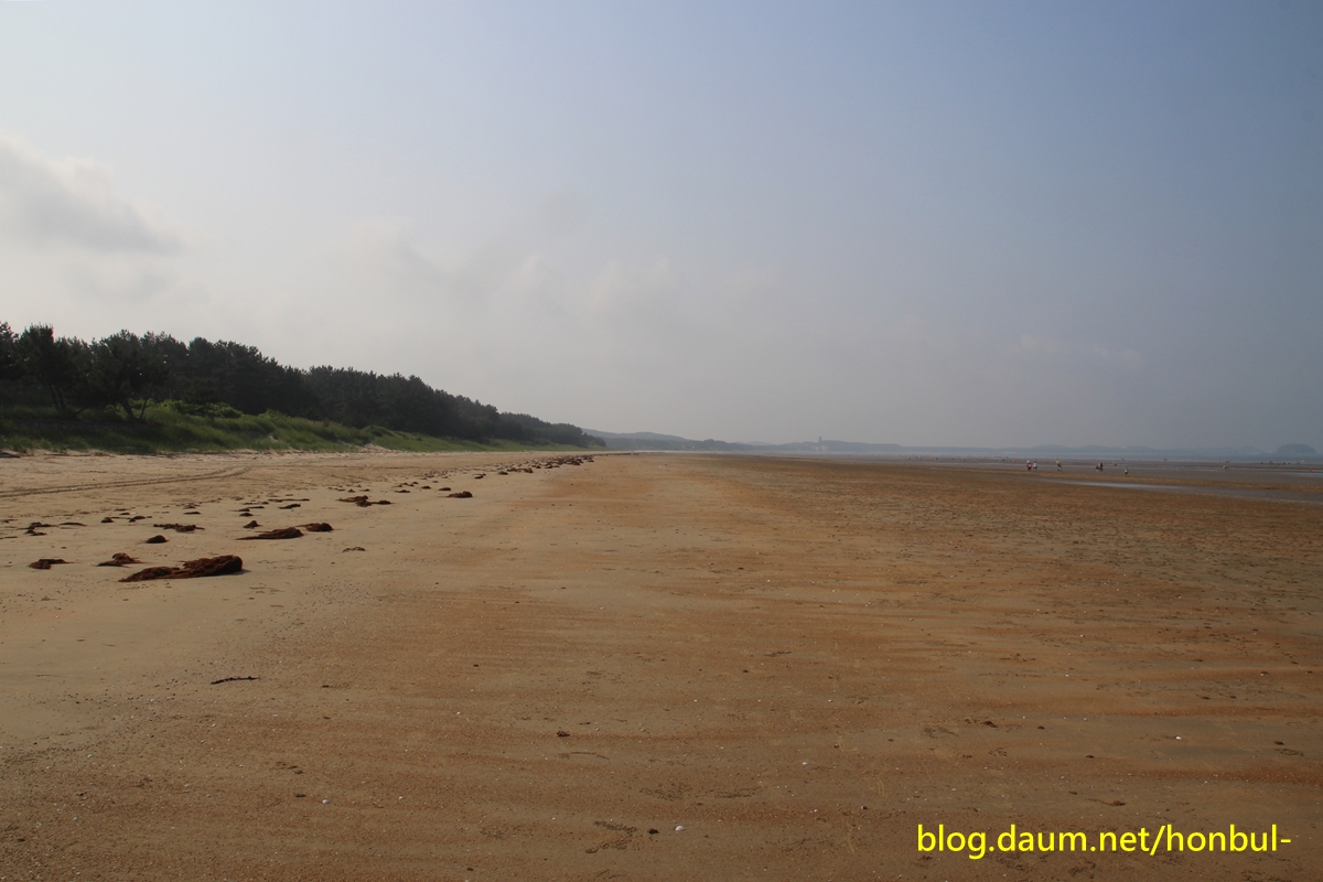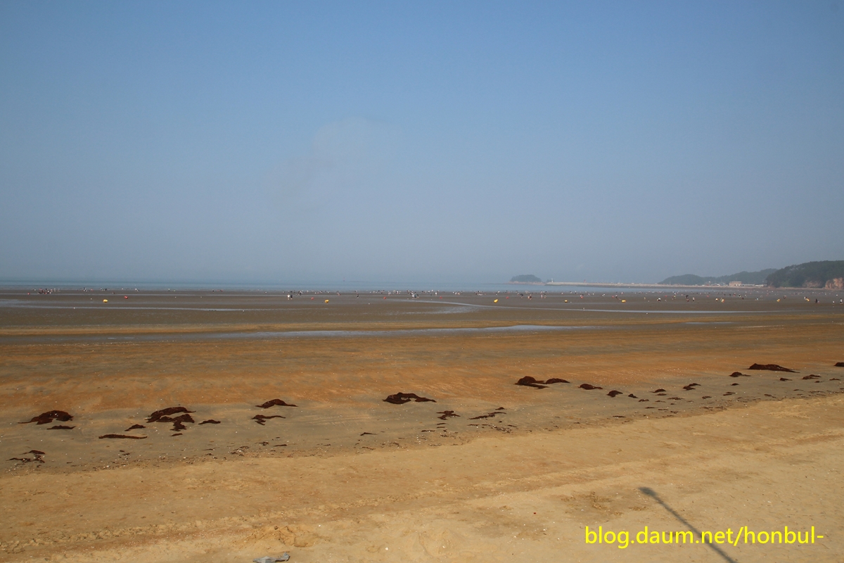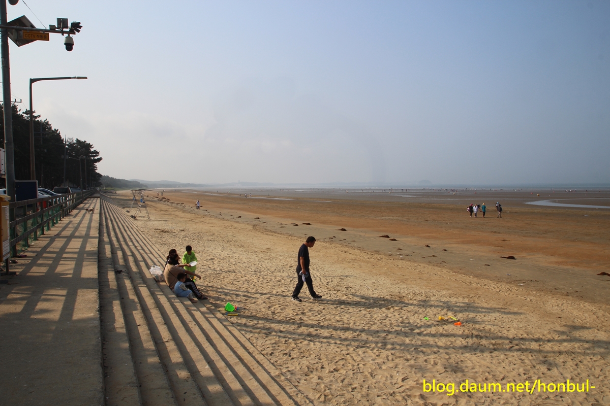물 빠진 해수욕장은 지평선만 보일 정도로 넓다.