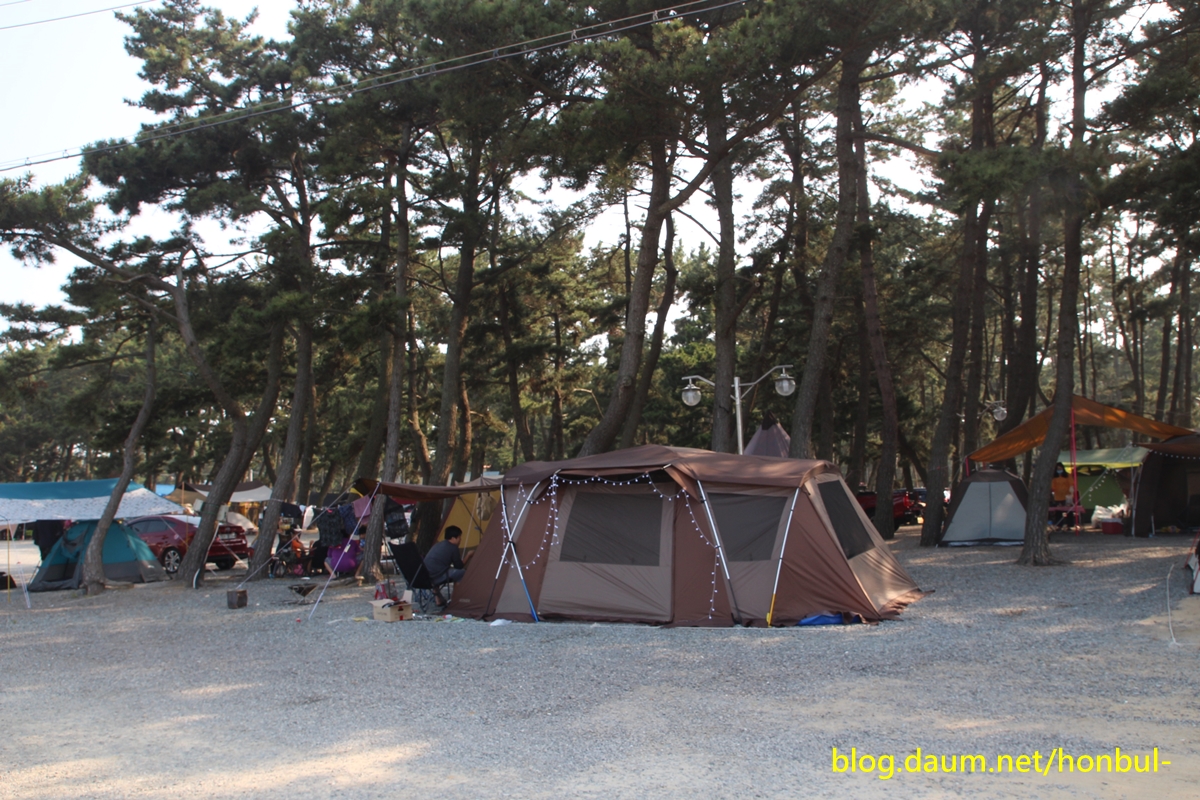 해수욕장을 따라 넓게 퍼져있는 소나무 숲에 오토캠핑장이 있어 산림욕을 즐기면서