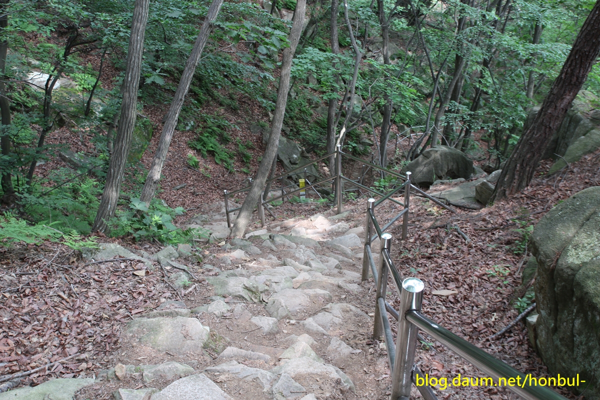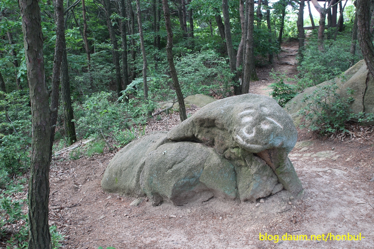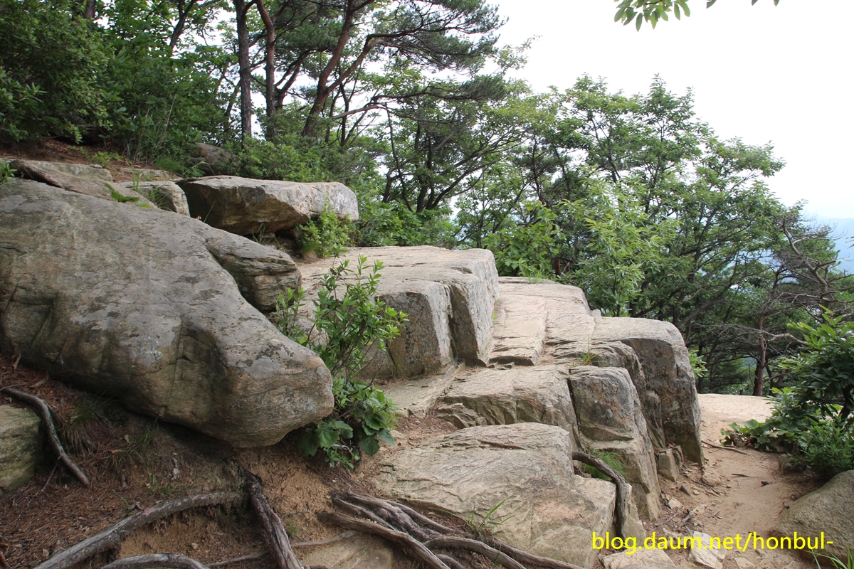 성질 급한 사람은 오른쪽 계단으로 내려와 바로 직진하면 정상 표지석을 볼 수 없다.