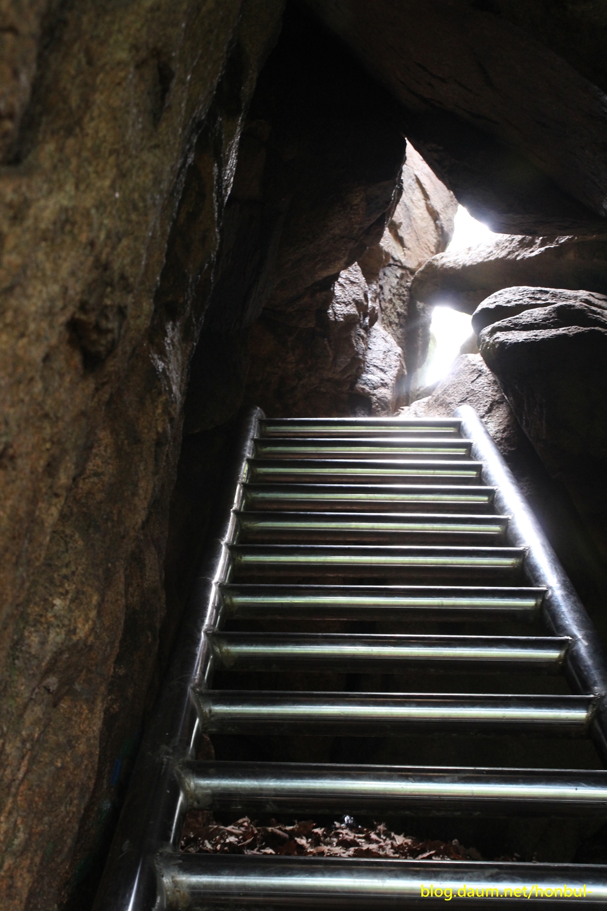 사다리가 놓여 있어 어렵지 않게 오를 수 있으나 마지막엔 잠깐 용을 써야 한다.