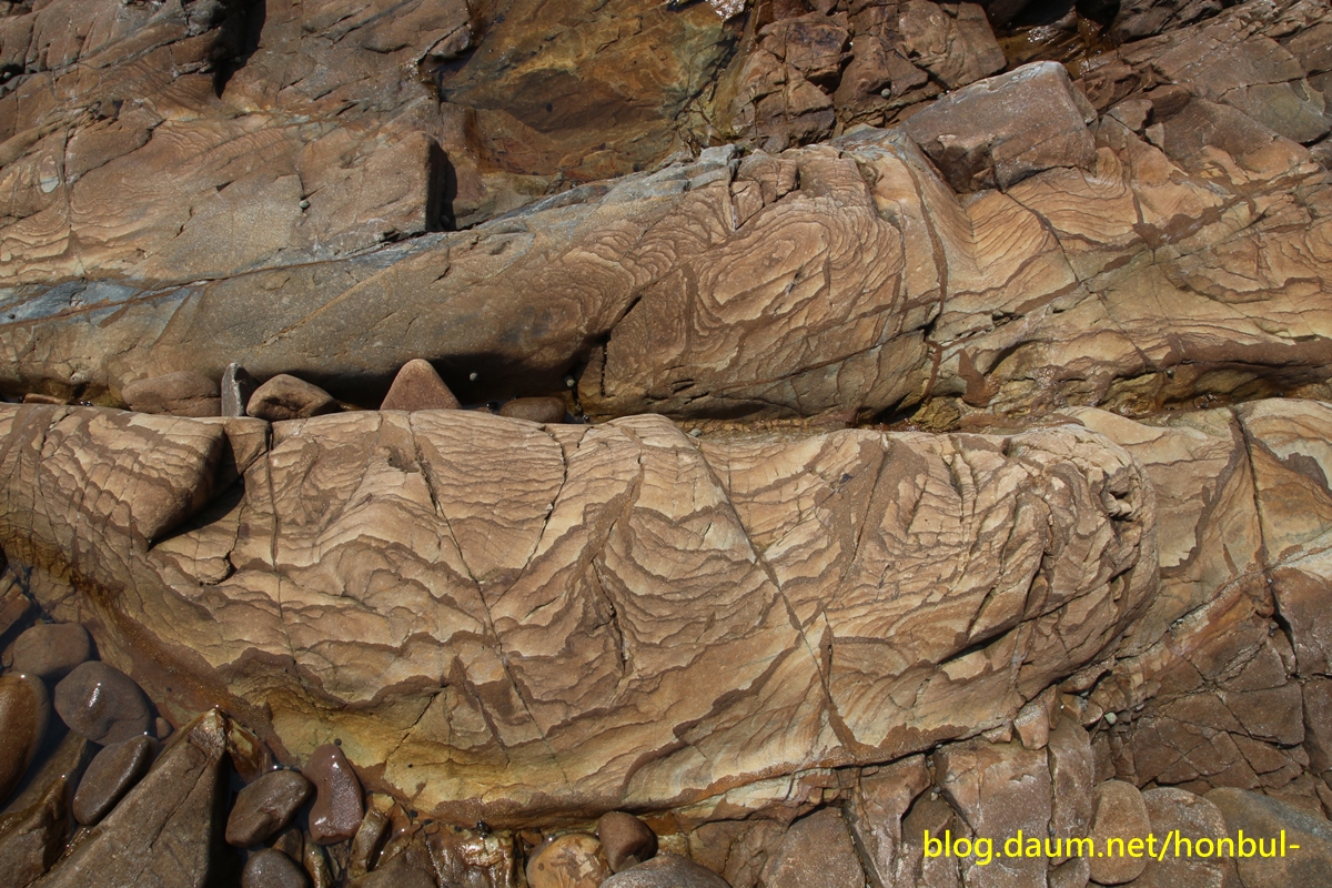 그런데도 온전히 포스팅 하나를 차지하는 건 밧개해수욕장을 거쳐 방포해수욕장으로 이동하는 통로의 바위 때문이다.