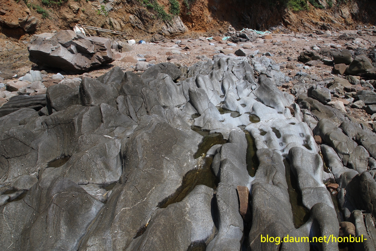 두에기해수욕장은 이런 돌이 많아 아이들에겐 위험하겠다.