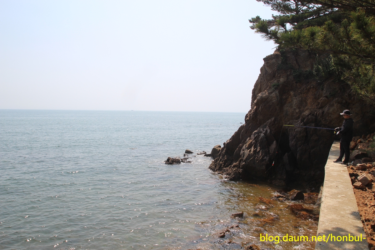 그때 해변 쪽에 나가 이 낚시꾼에게 건너갈 수 있냐고 물었더니 못 온다고 했다.