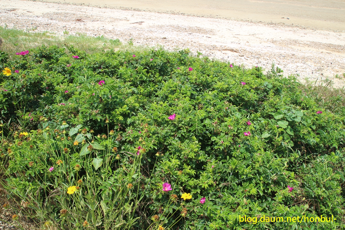 바닷가라 해당화가 보인다.