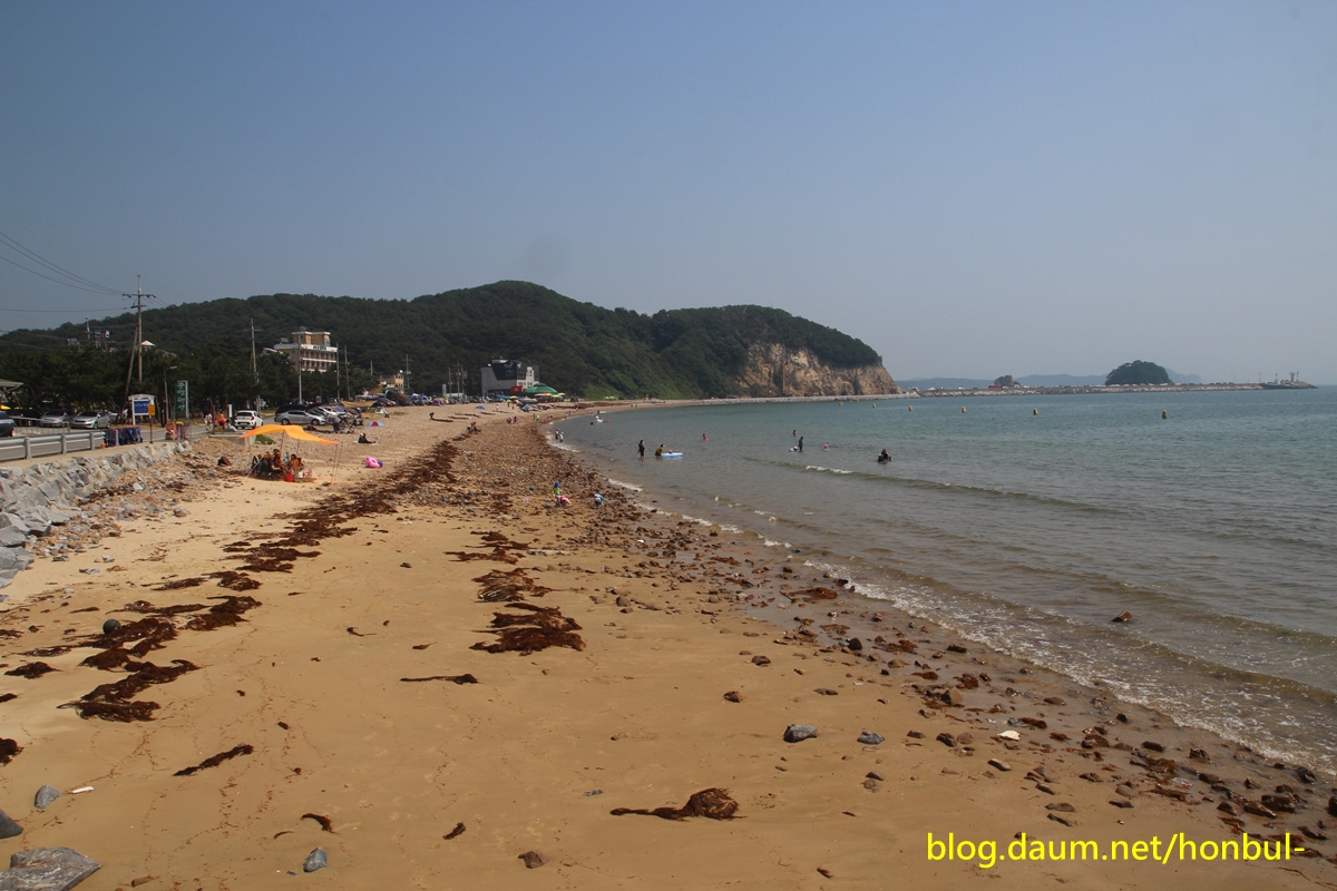 방포해수욕장엔 자잘한 돌이 많아 아이들이 싫어하겠다.