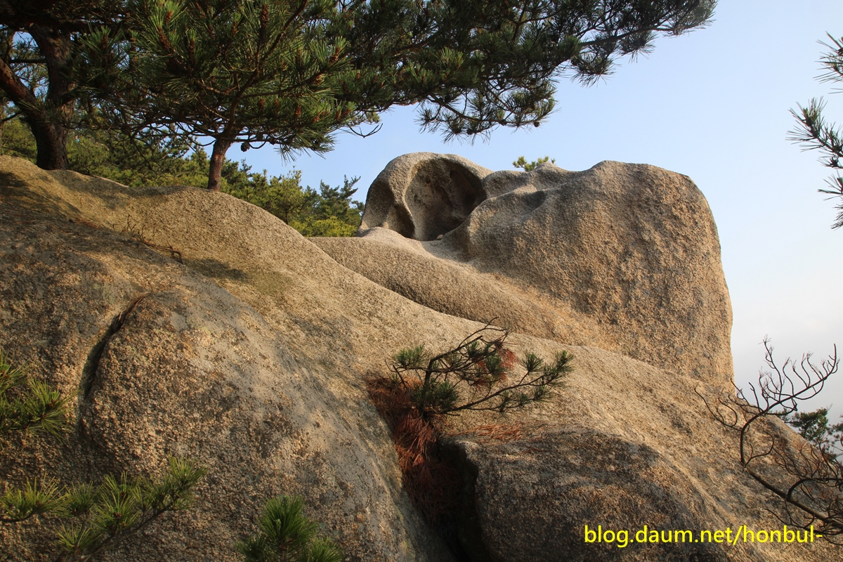 산행을 끝냈다고 생각할 즈음 왼쪽으로 나무데크가 있길래 따라갔더니 여러 개 재미있는 바위가 보인다.