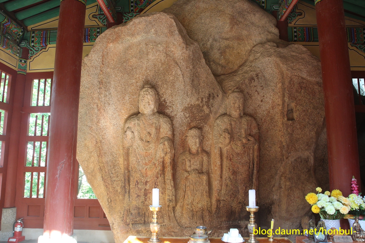 일소계를 지나면 바로 마애삼존불 입상이 있는 건물이 보여 들어간다.