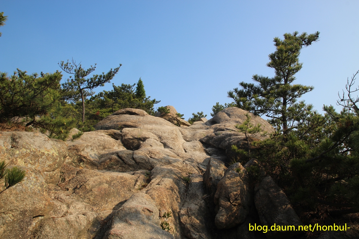 정상으로 가는 길에 만나는 기암 괴석과 소나무의 어울림이 좋다.