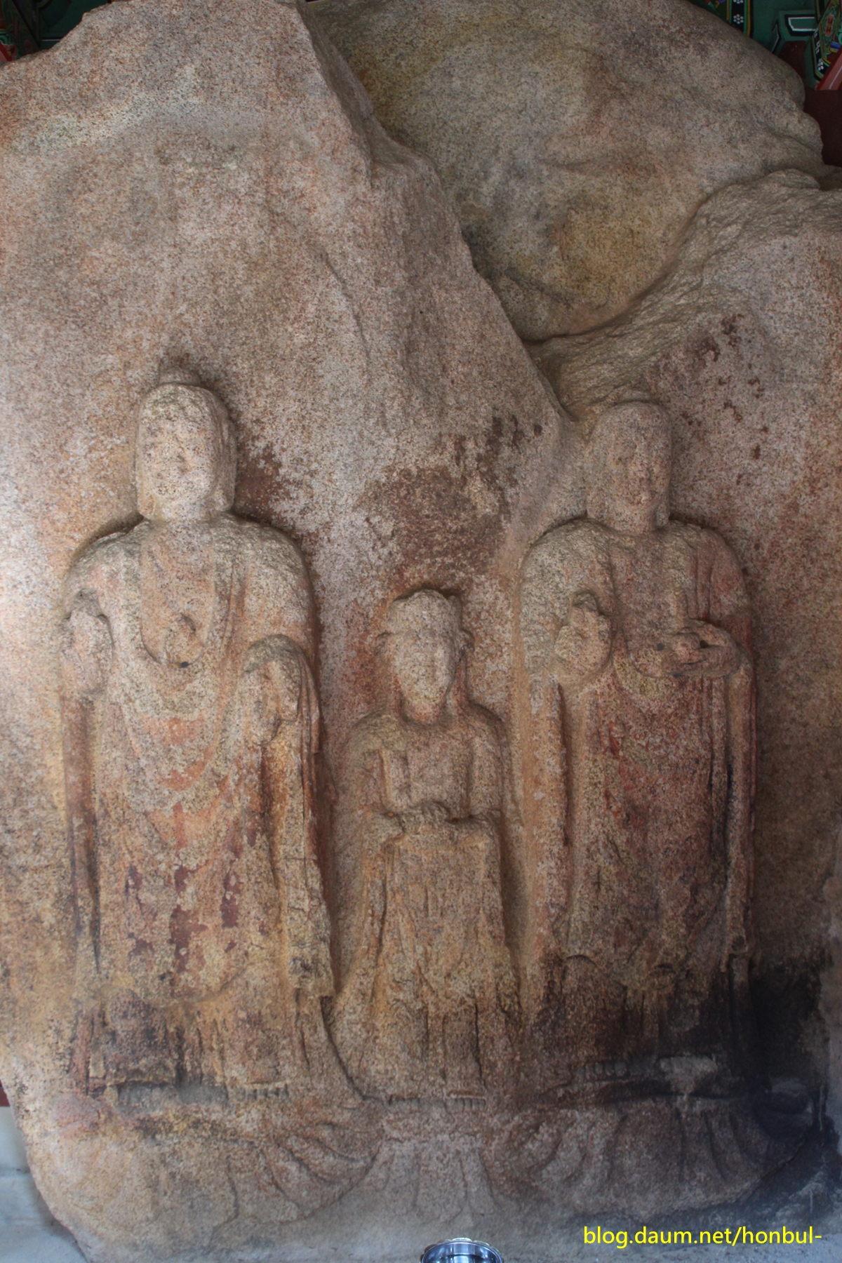 비록 마애삼존불이 훼손됐어도 섬세한 작품성을 인정받아 국보로 지정되어 다행이다.