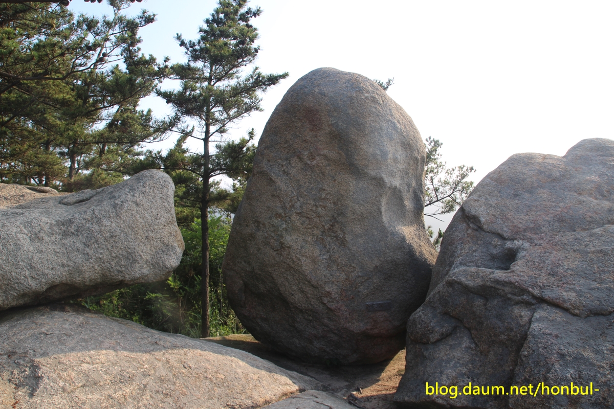 정상에서 조금 떨어진 재미있는 바위, 볼링공도 아니고 뭐라고 이름 지을까?