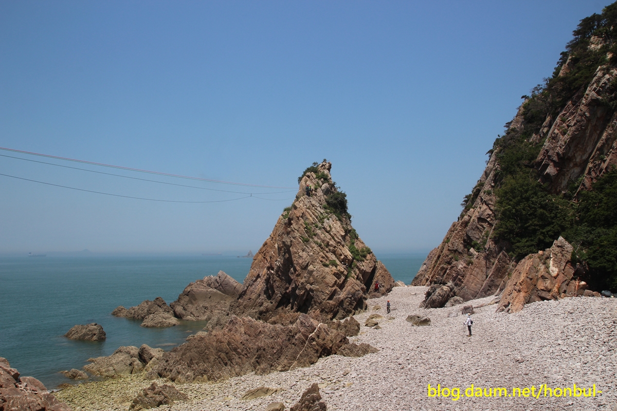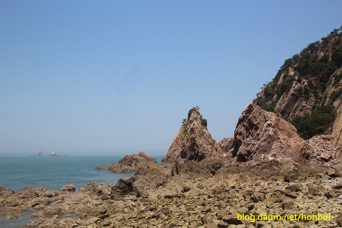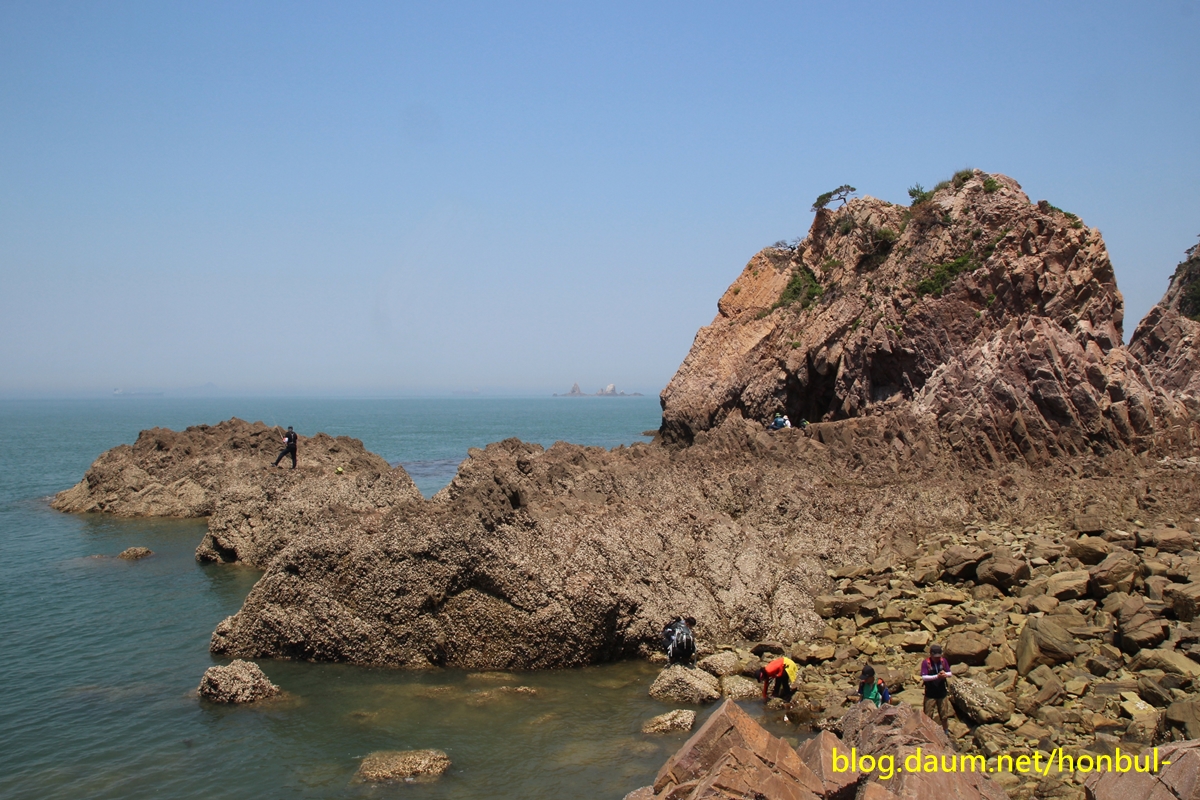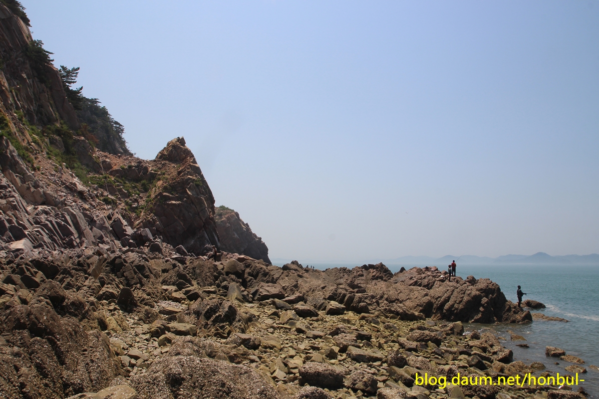 물이 완전히 빠진 썰물 때는 어렵지 않게 해안을 따라 들어올 수도 있겠다.