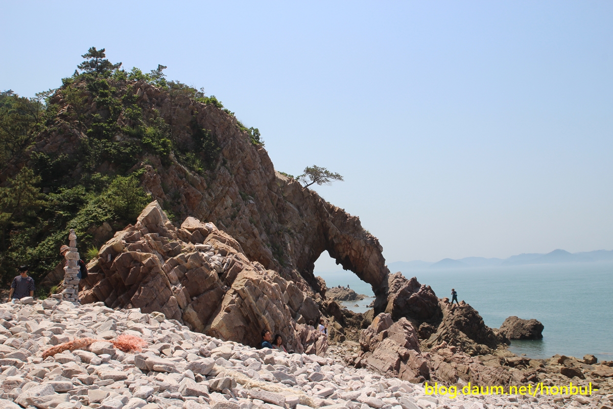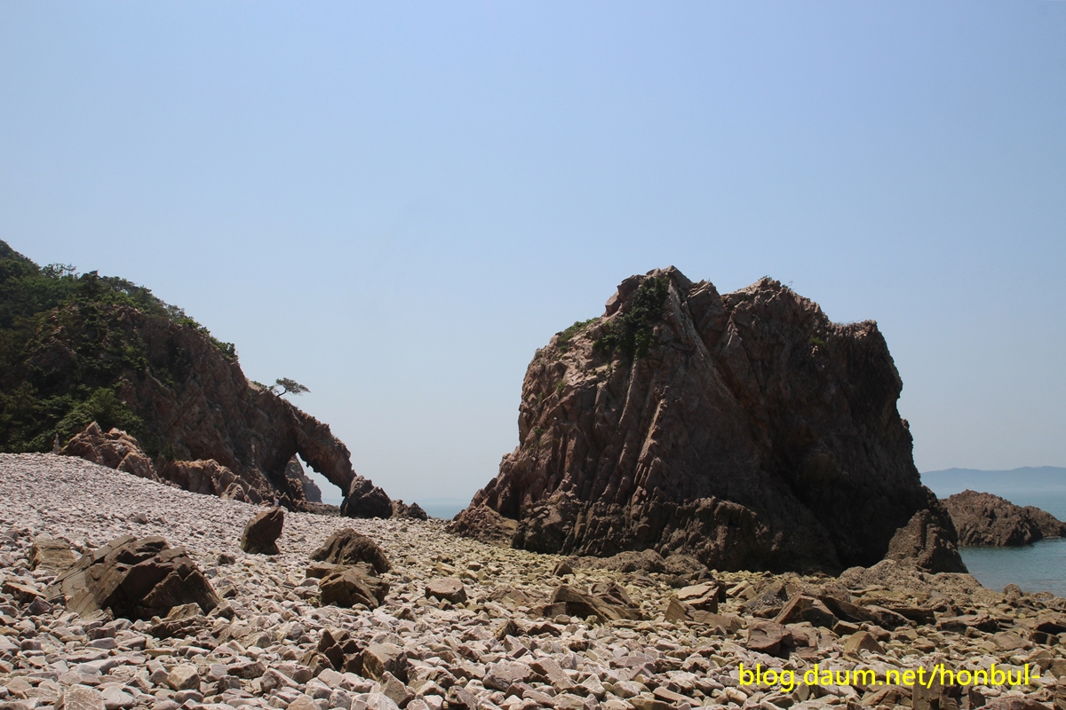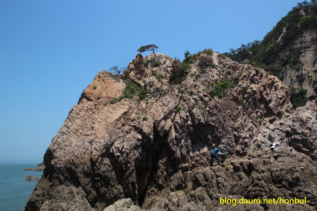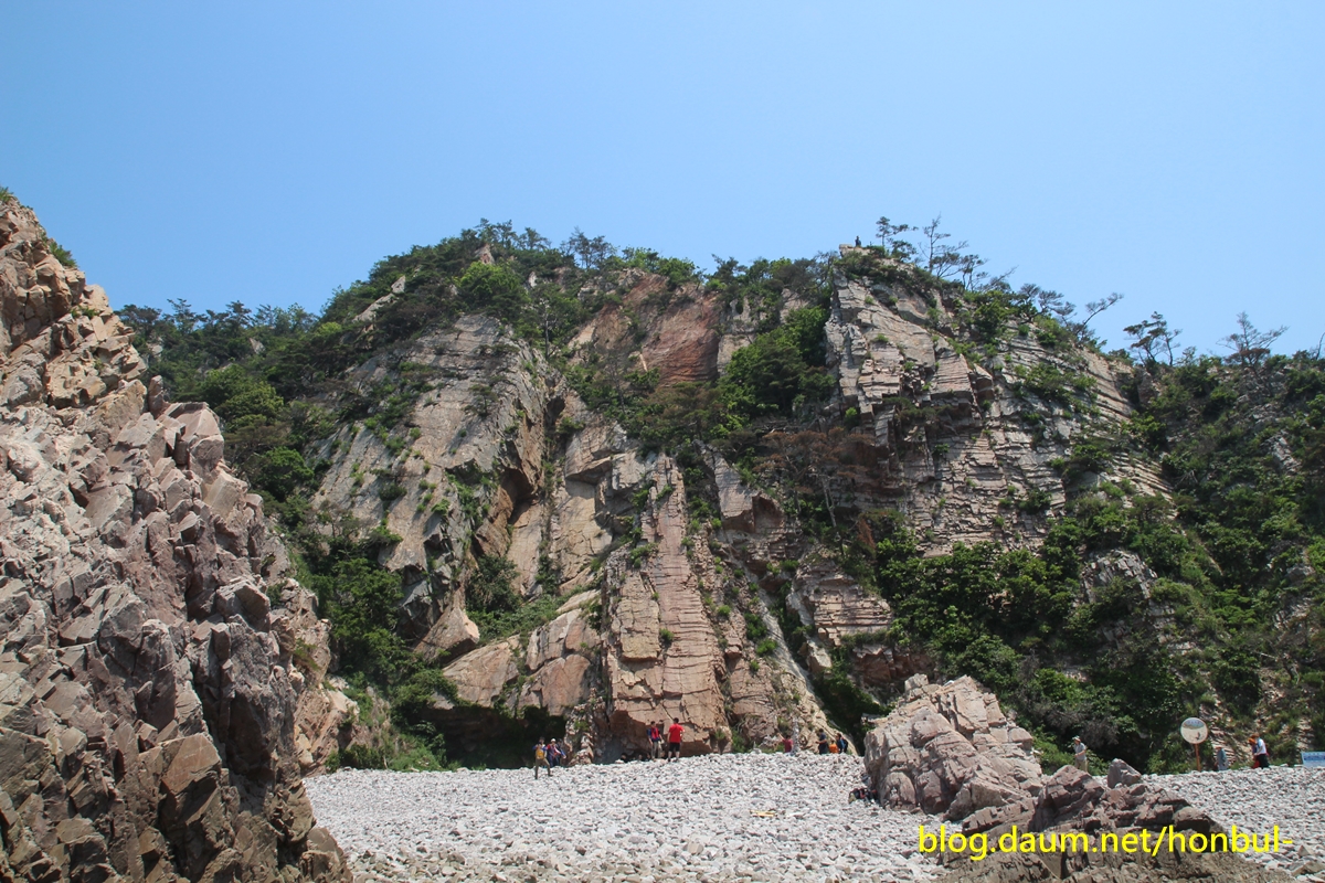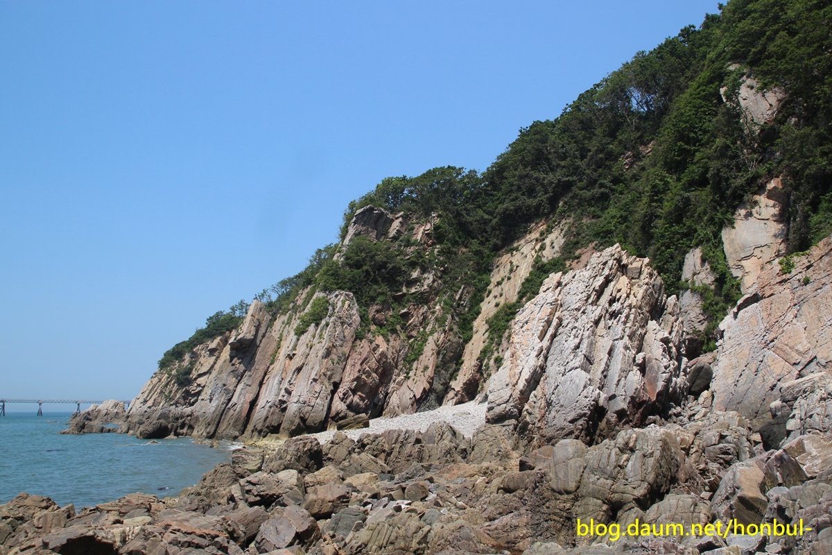 물이 완전히 빠진 썰물 때는 어렵지 않게 해안을 따라 들어올 수도 있겠다.
