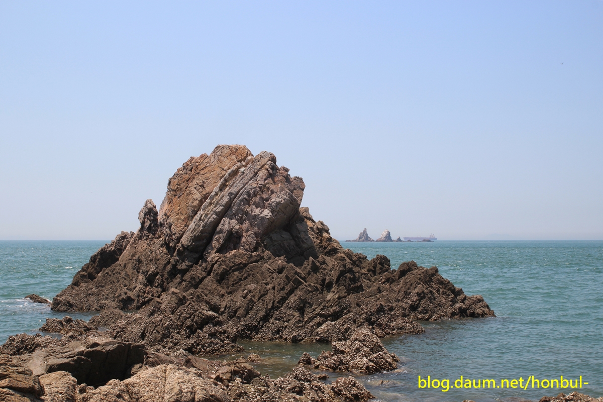다음 바위를 지나 해변으로 내려오니 바다 한가운데 멋진 바위 몇 개가 재미있게 붙어 있다.