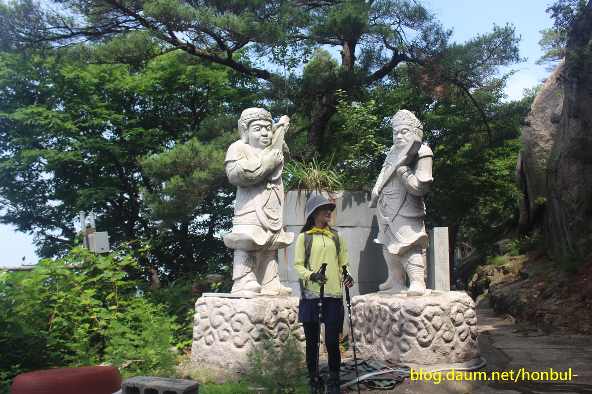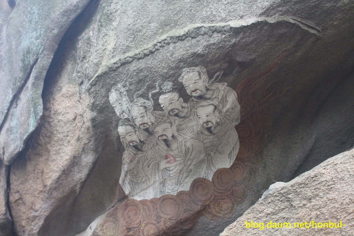 왼쪽 바위엔 백마를 탄 산신이 있으나 소나무에 가려 찍지 않았다.