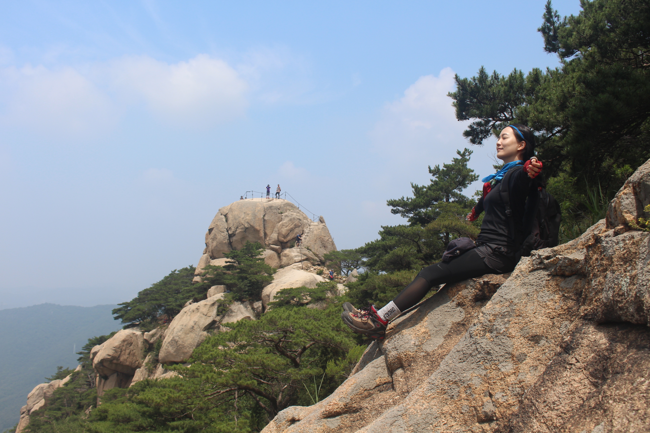 잠시 쉴겸 바위에 오른다.