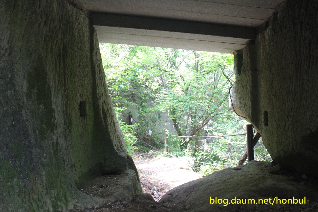 양쪽 바위를 깎아내고 지도릿돌을 설치해 대문을 달았던 흔적도 보인다.
