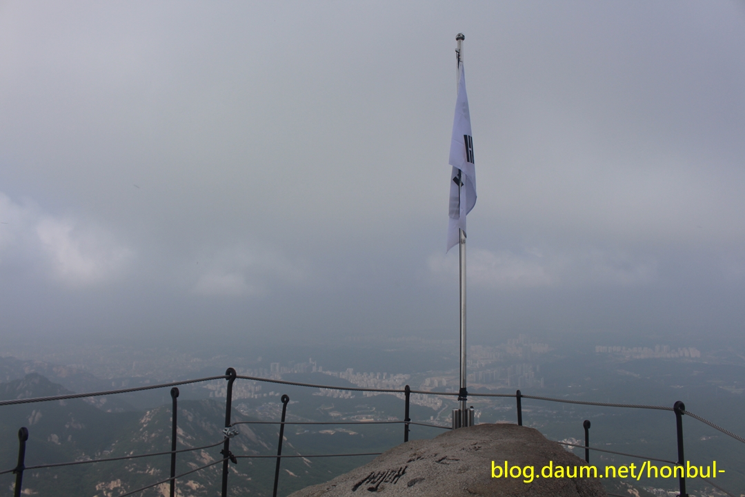 정상의 태극기도 바람이 없으니 늘어져 쉬고 있다.