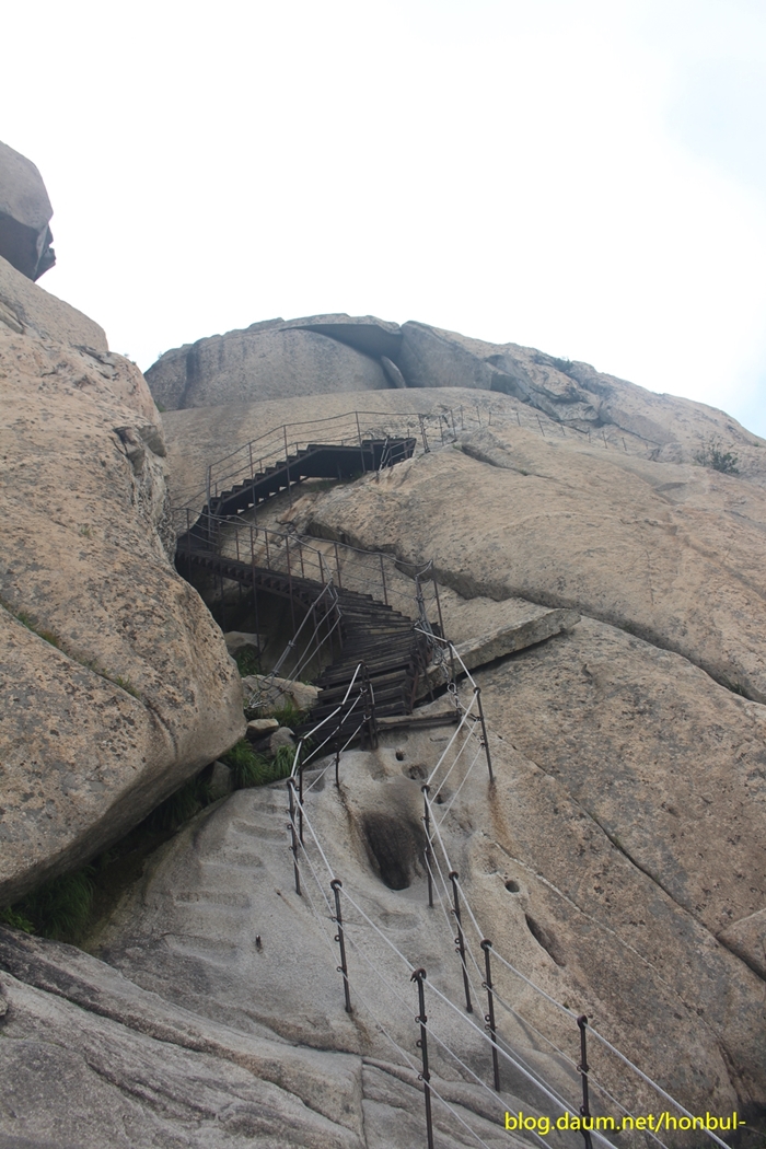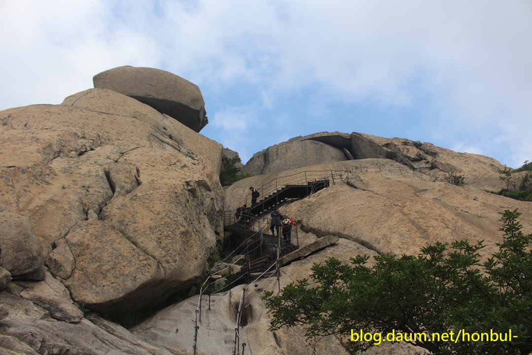 주말이면 사계절 내내 북적이던 백운대 계단도 평일이라 한산하다.