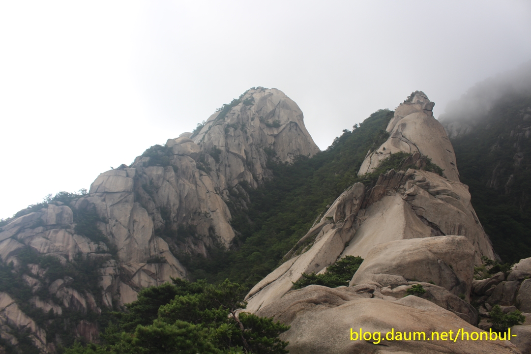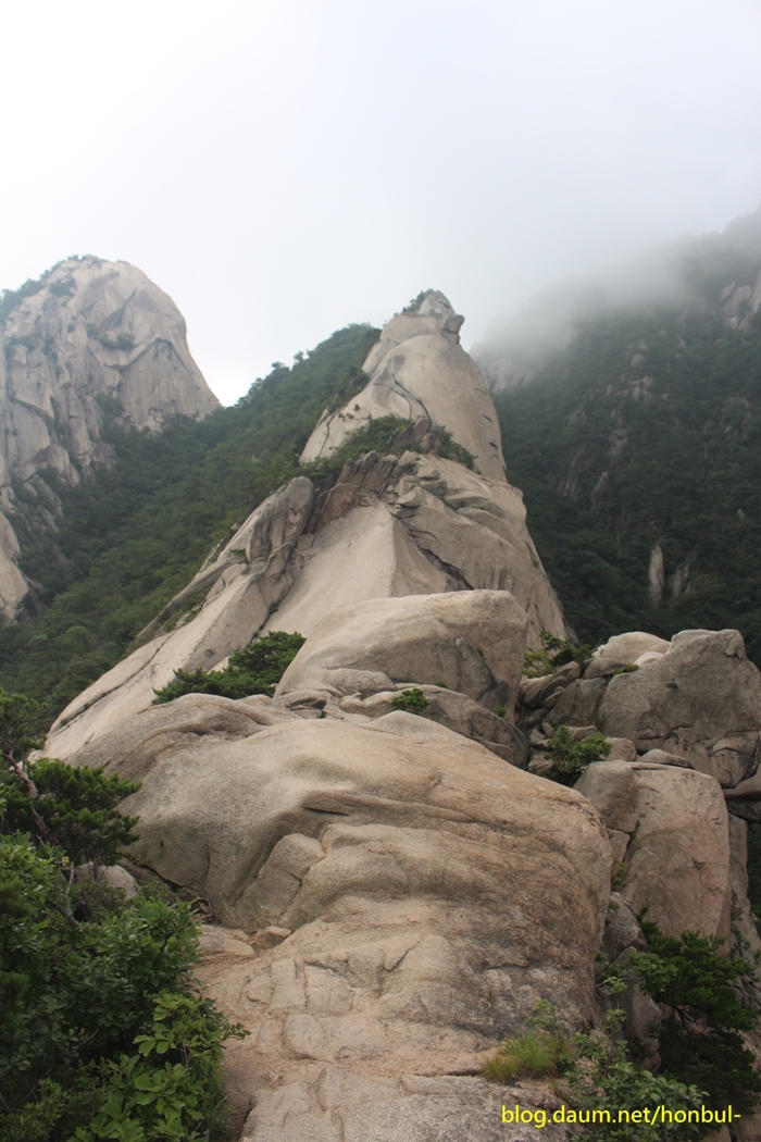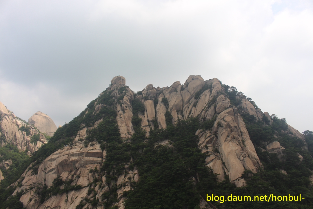 파랑새능선을 오르며 보는 어금니바위는 정말 어금니를 꼭 닮았는데, 멀리서 보니 송곳니처럼 생겼다.