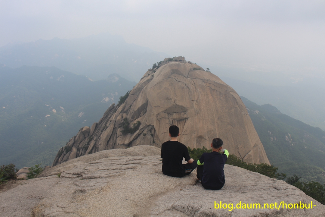 백운대 정상 찍고 내려가며 잠시 인수봉을 바라보며 쉬는 어느 부자의 오붓한 뒷모습이 아름답다.