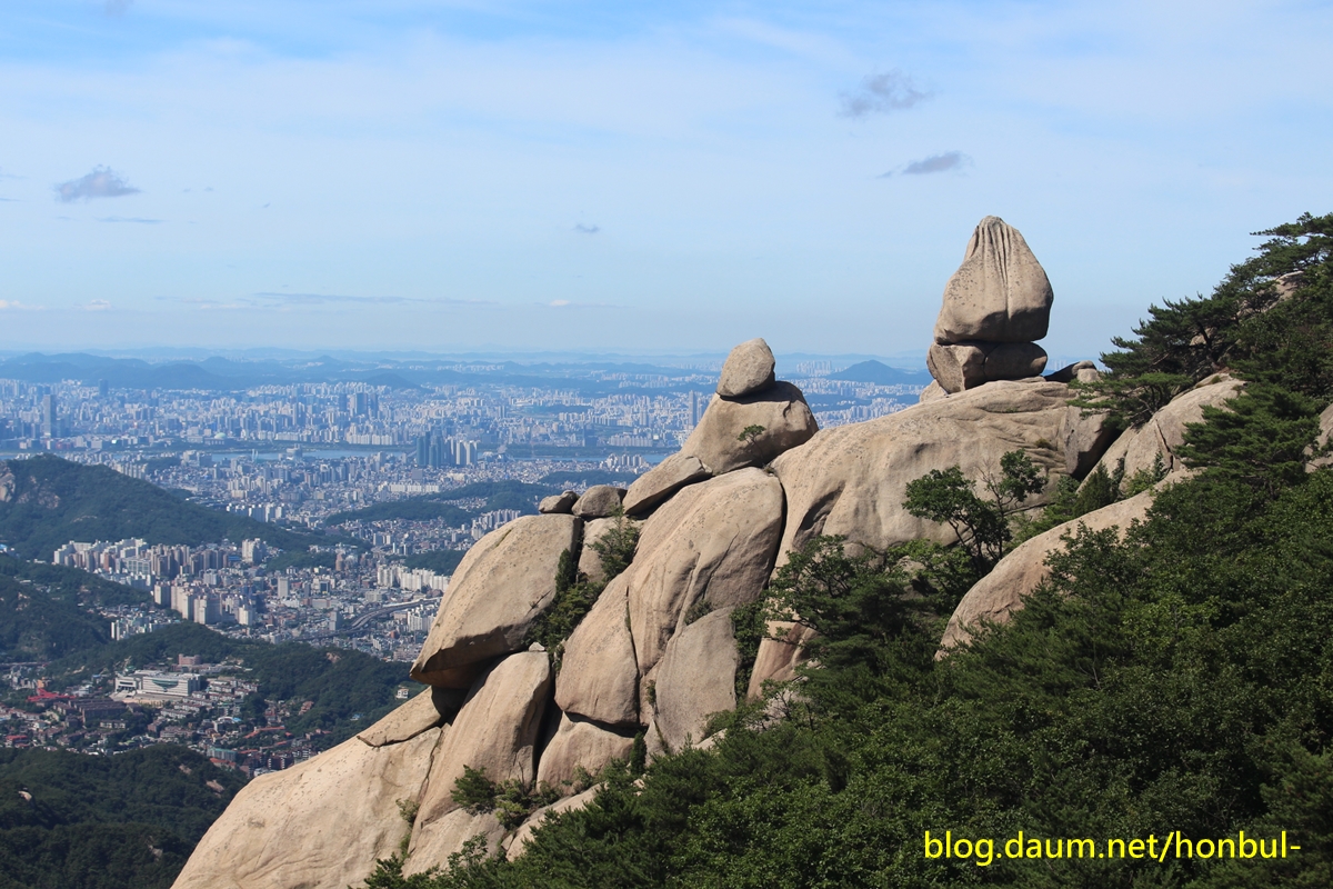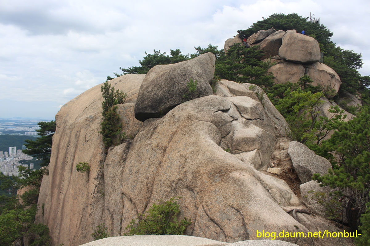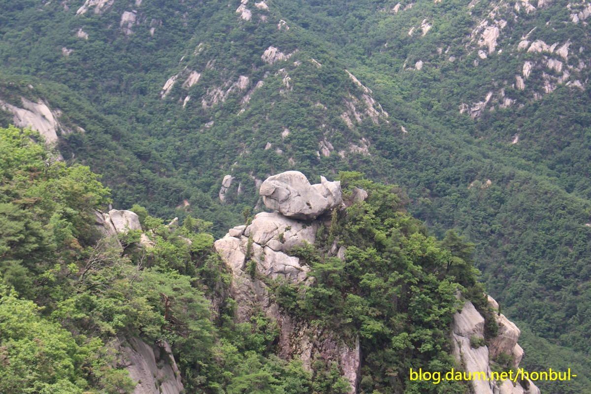 바로 위 사진의 바위를 문수봉에서 내려와 옆에서 본 모습이다.