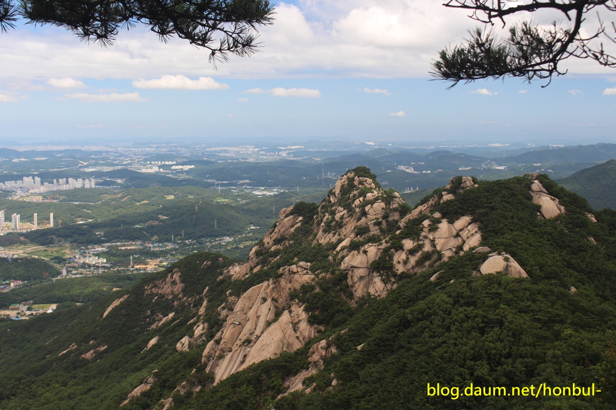 문수봉 정상에서 본 아래쪽 바위는 이름조차 없다.