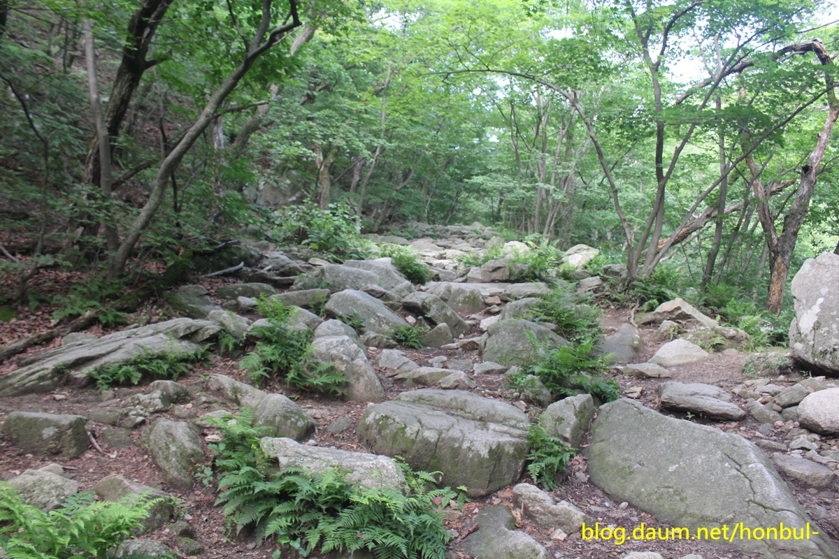보광사 터 앞길은 얼마간 이런 너덜길을 걸어가야 한다.