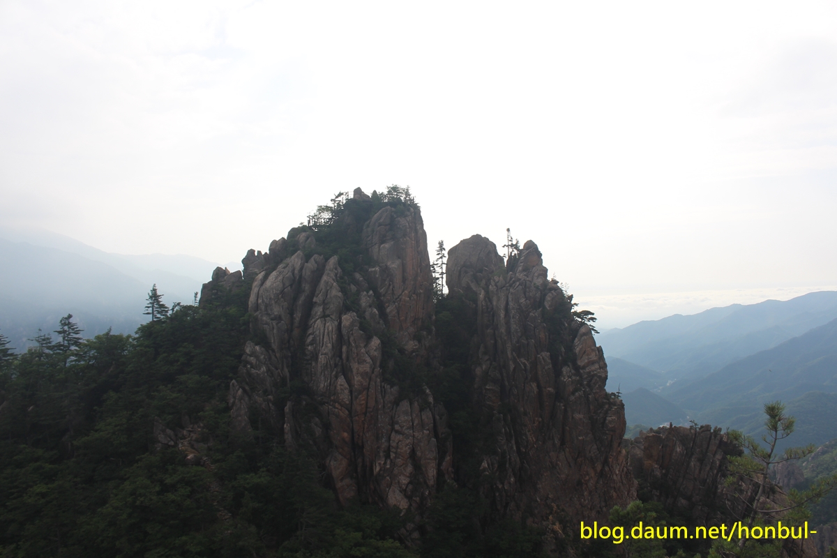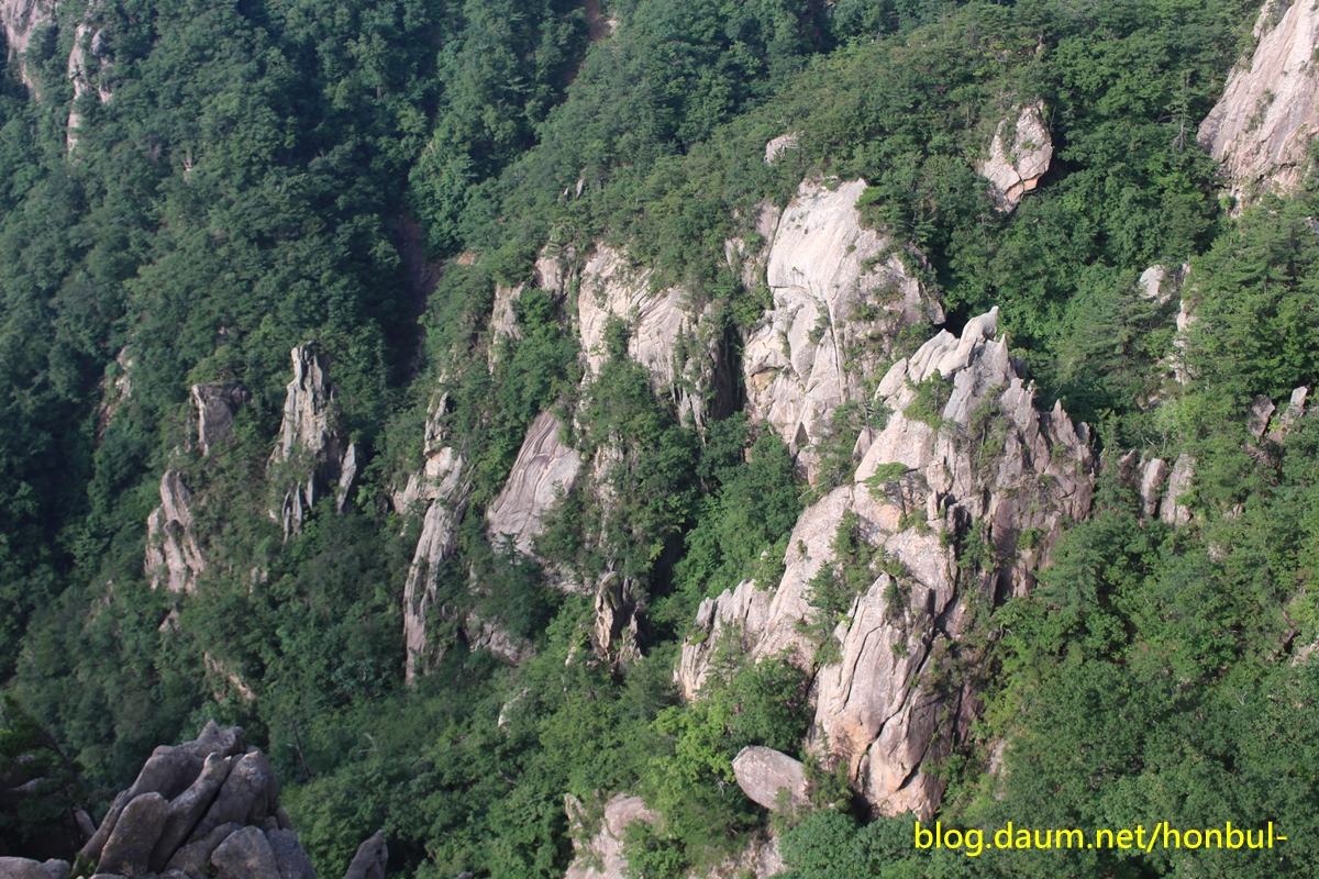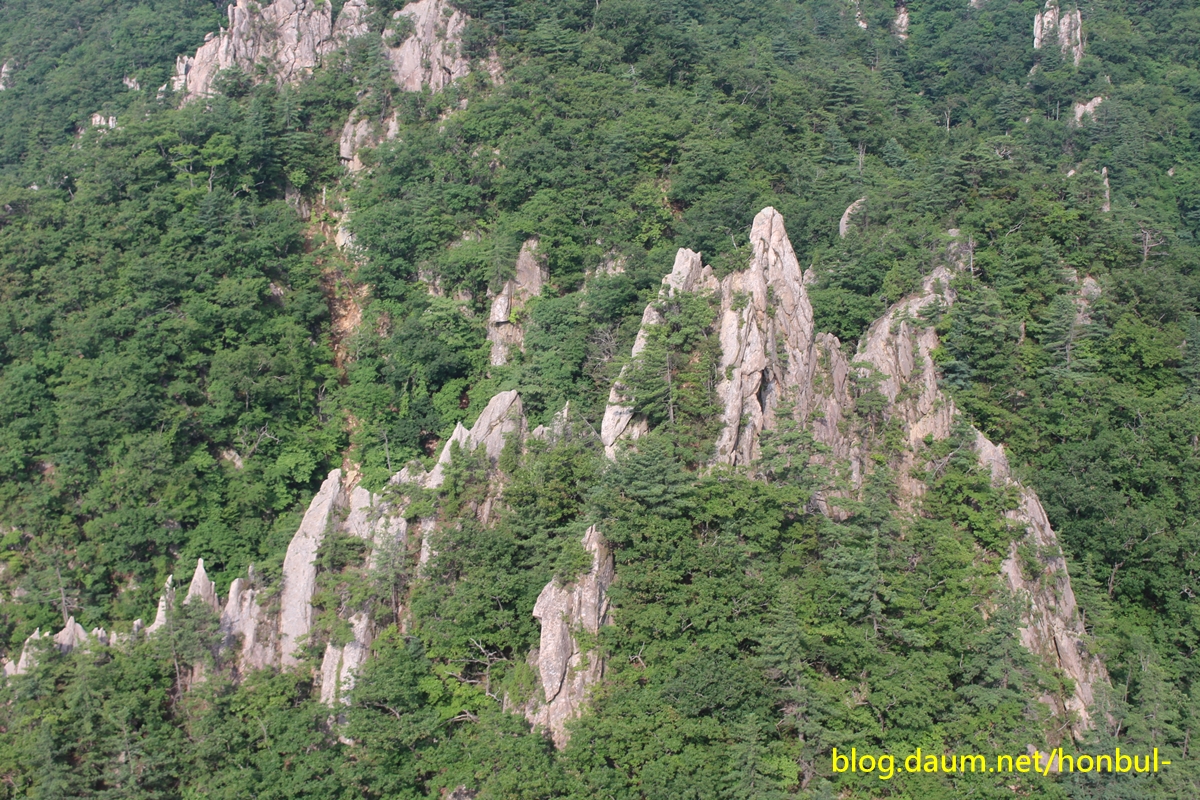 남설악의 이 칠형제봉은 흘림골을 내려가는 내내 보인다.