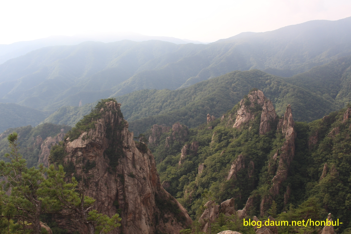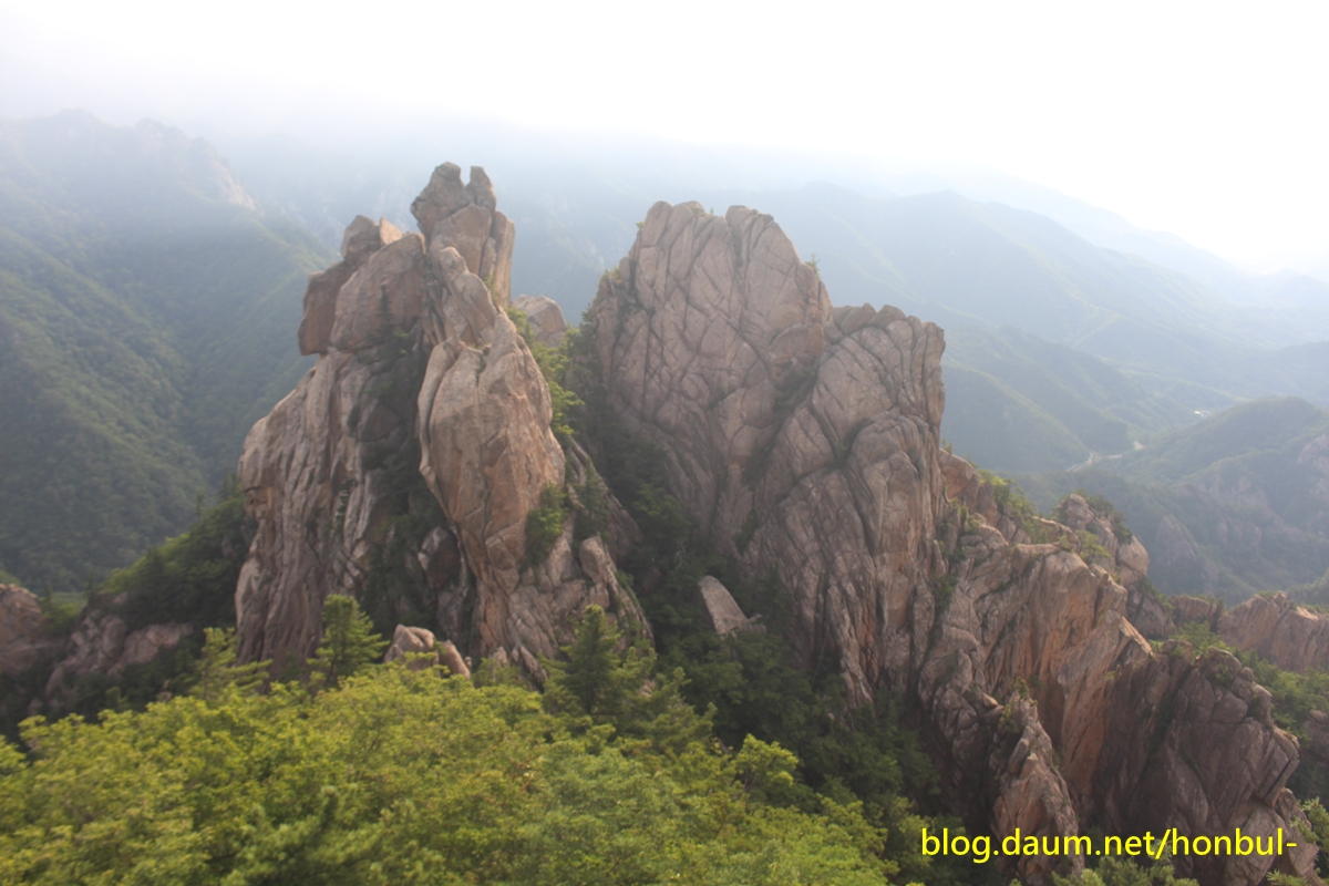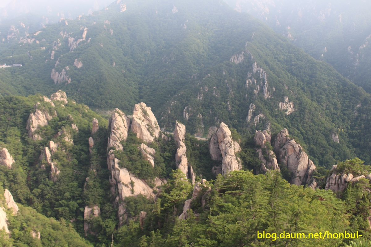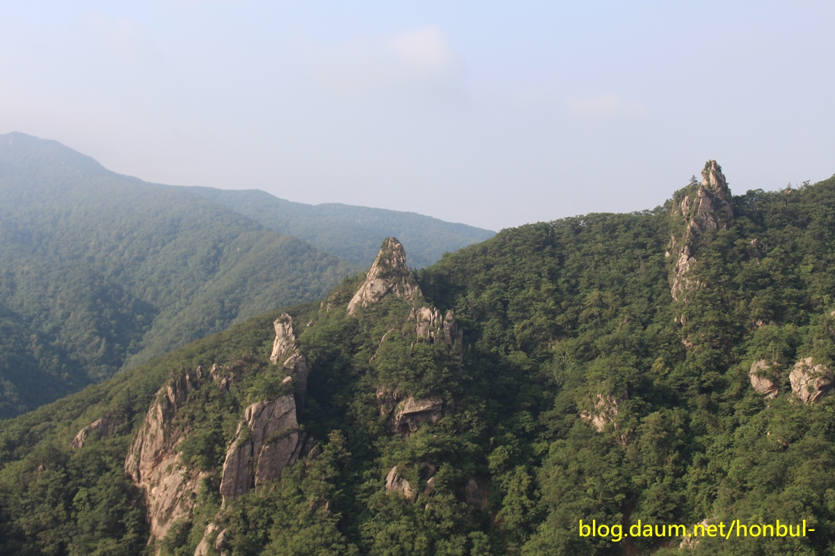 남설악의 이 칠형제봉은 흘림골을 내려가는 내내 보인다.
