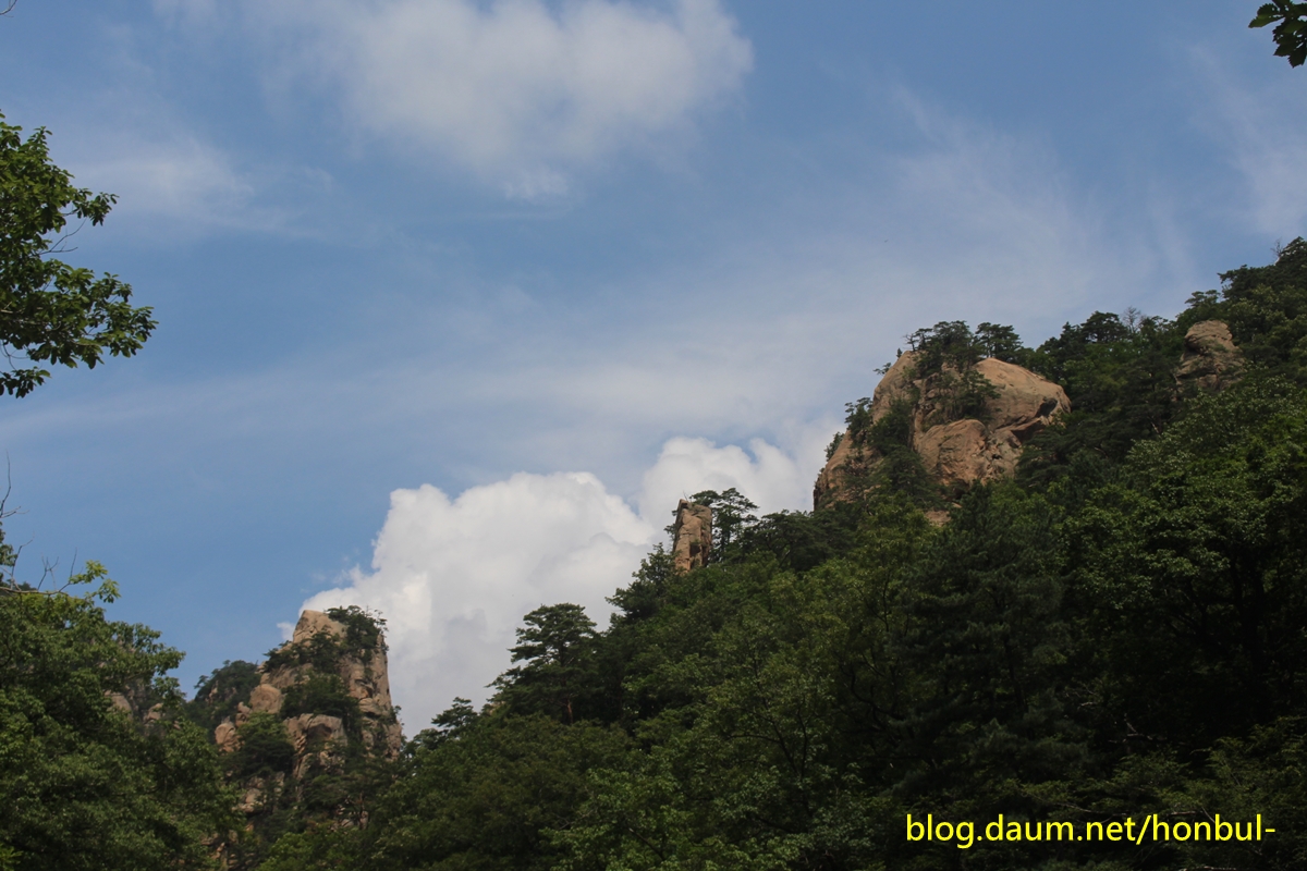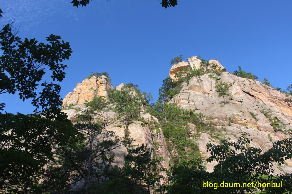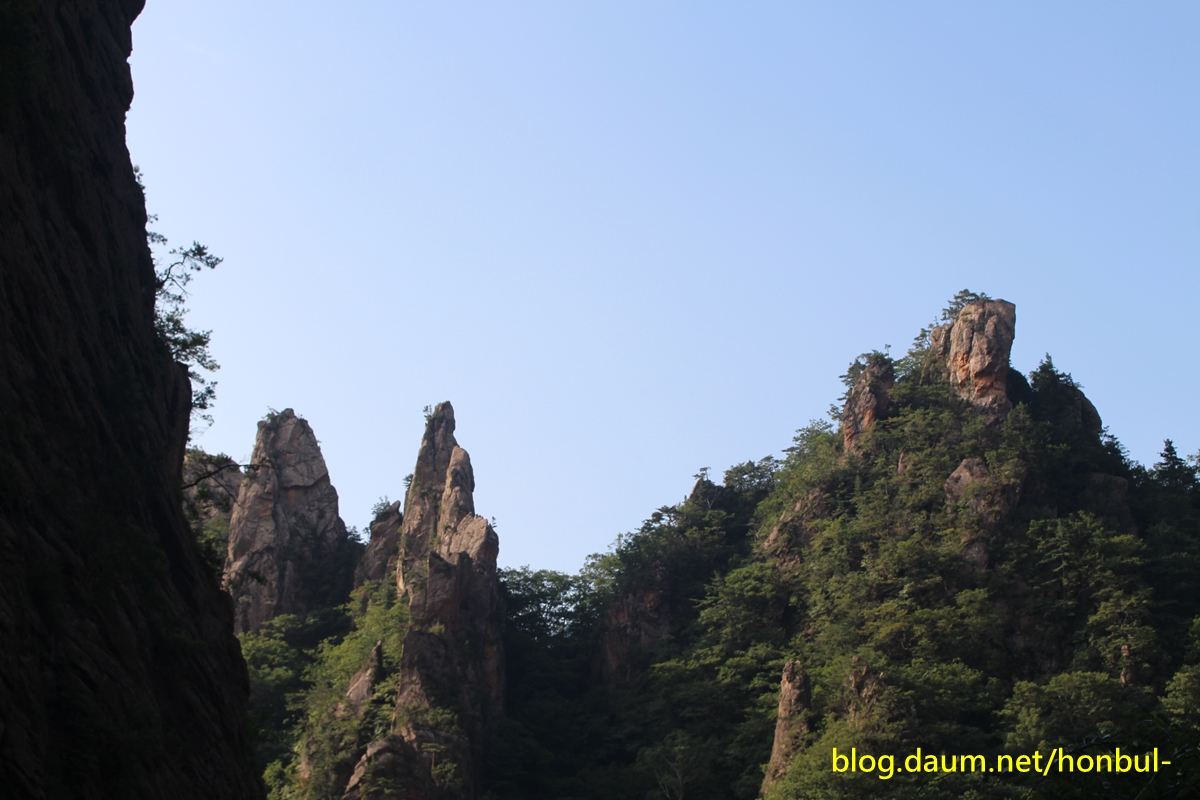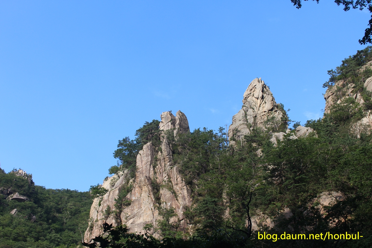 계곡에서 보는 암봉은 스카이라인이 멋지다.