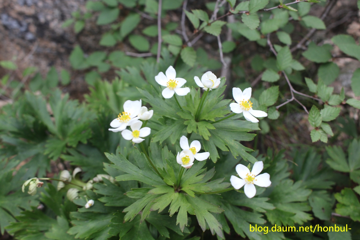 고개로 내려가는 중간에 지천으로 널린 바람꽃을 산솜다리 보듯 반긴다.