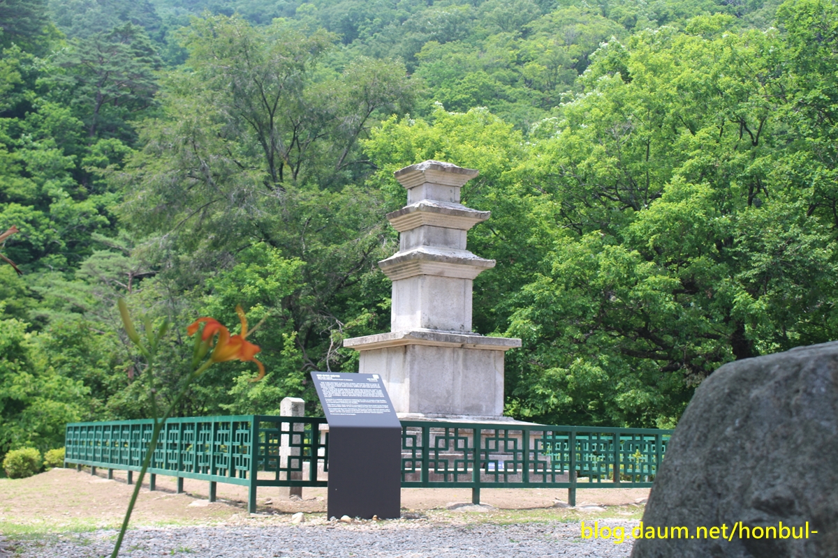 신라시대의 석탑 양식에 따라 기단 두 단을 만들고 그 위에 3층 탑신을 두었다.