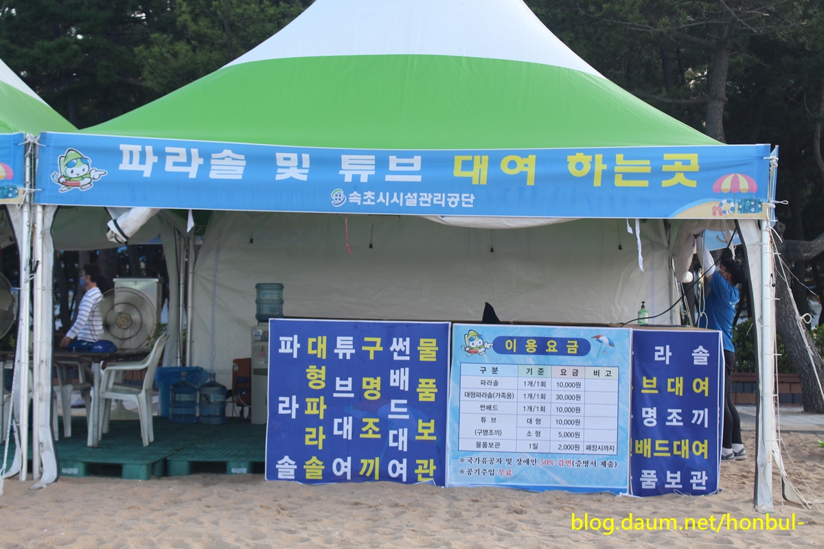 하계 휴가객을 위한 속초해수욕장을 매년 7월부터 8월까지 운영하고 있다. (안내문)