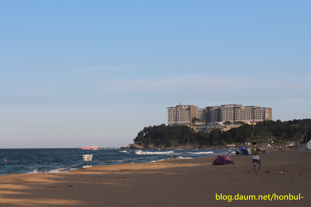 속초해변 끝에 있는 외옹치해수욕장 위 롯데리조트다.