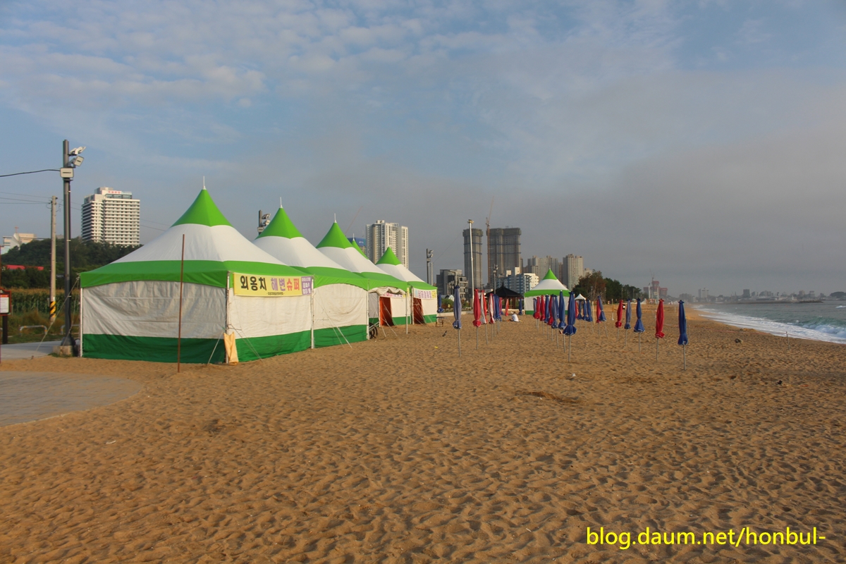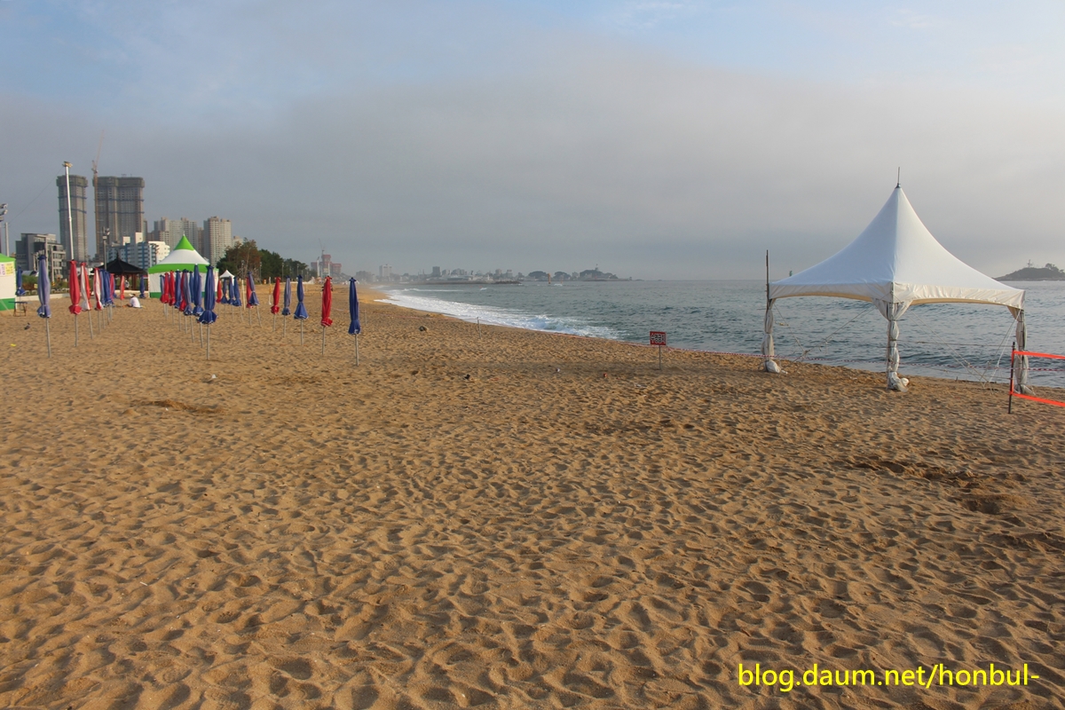 이른 아침이라 해수욕장은 한가하다.