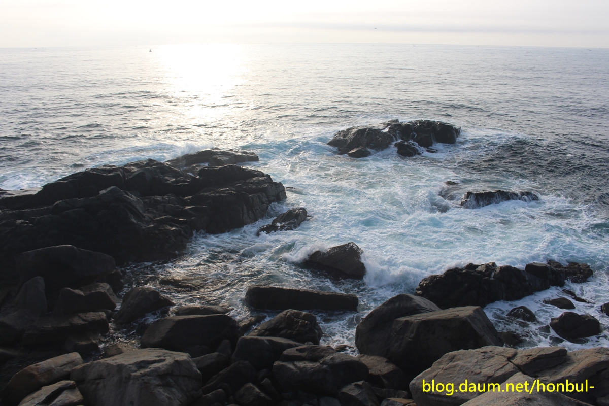 철석이며 파도가 바위를 치는 소리가 좋다.