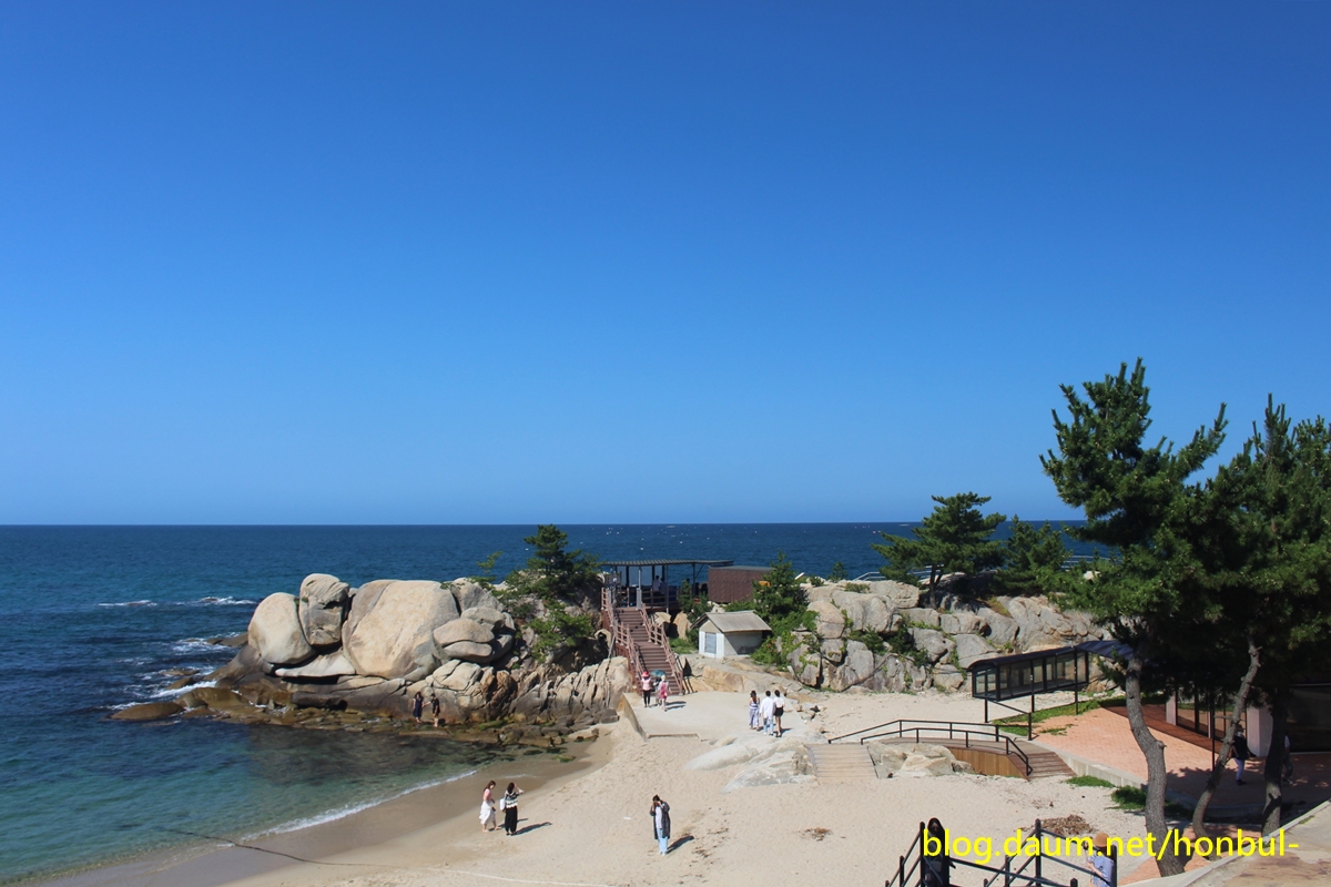 파도소리를 따라 조금씩 걸어 내려가다 보면 조그마한 백사장과 얕은 바다가 보이고,