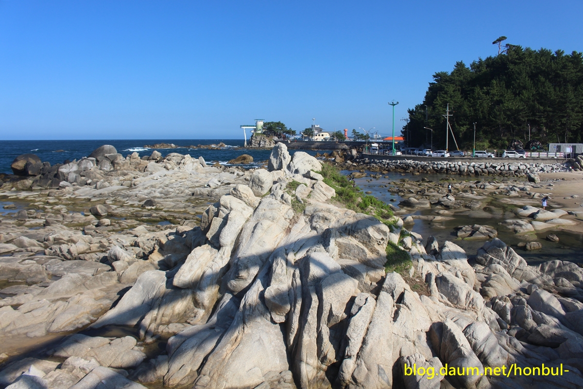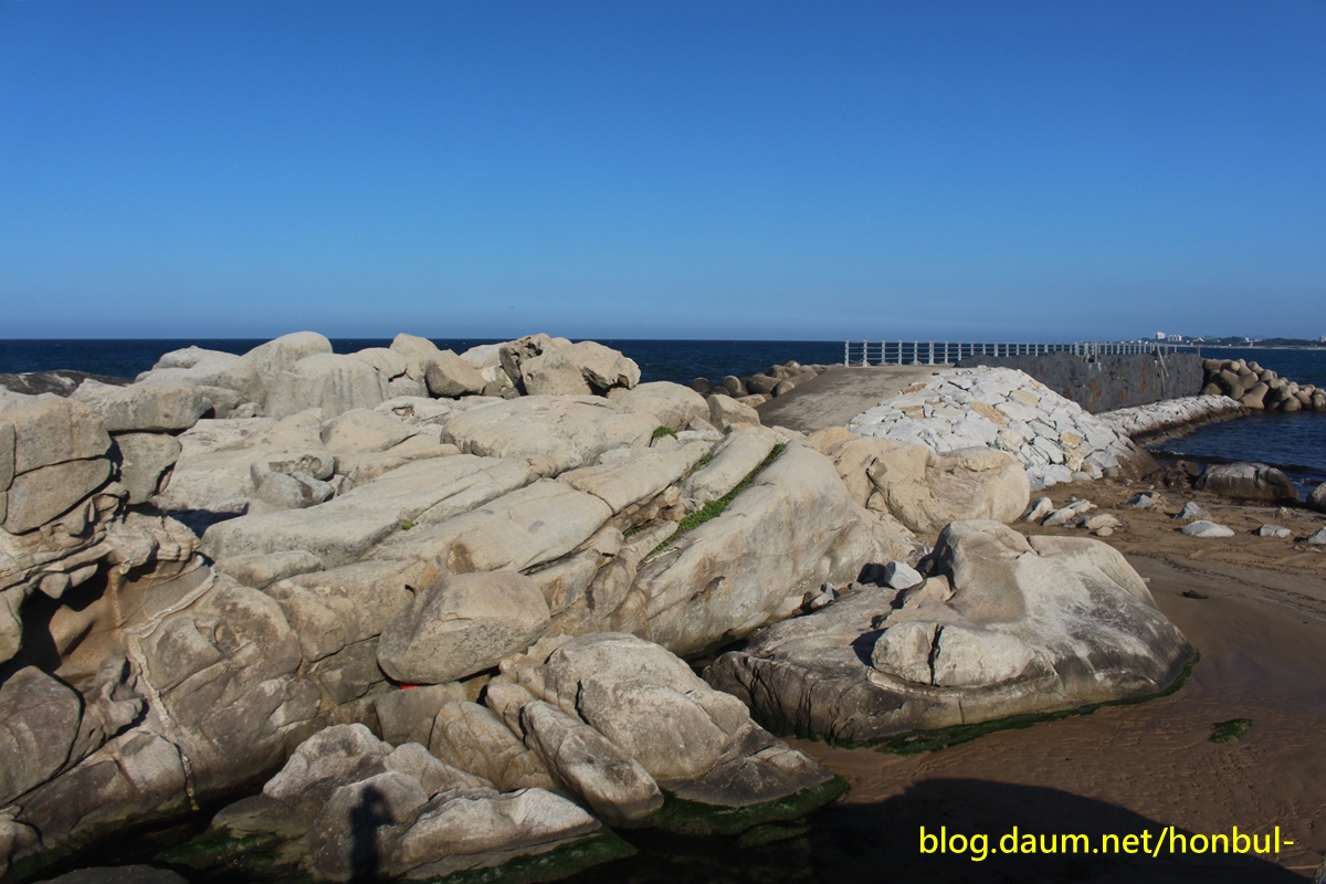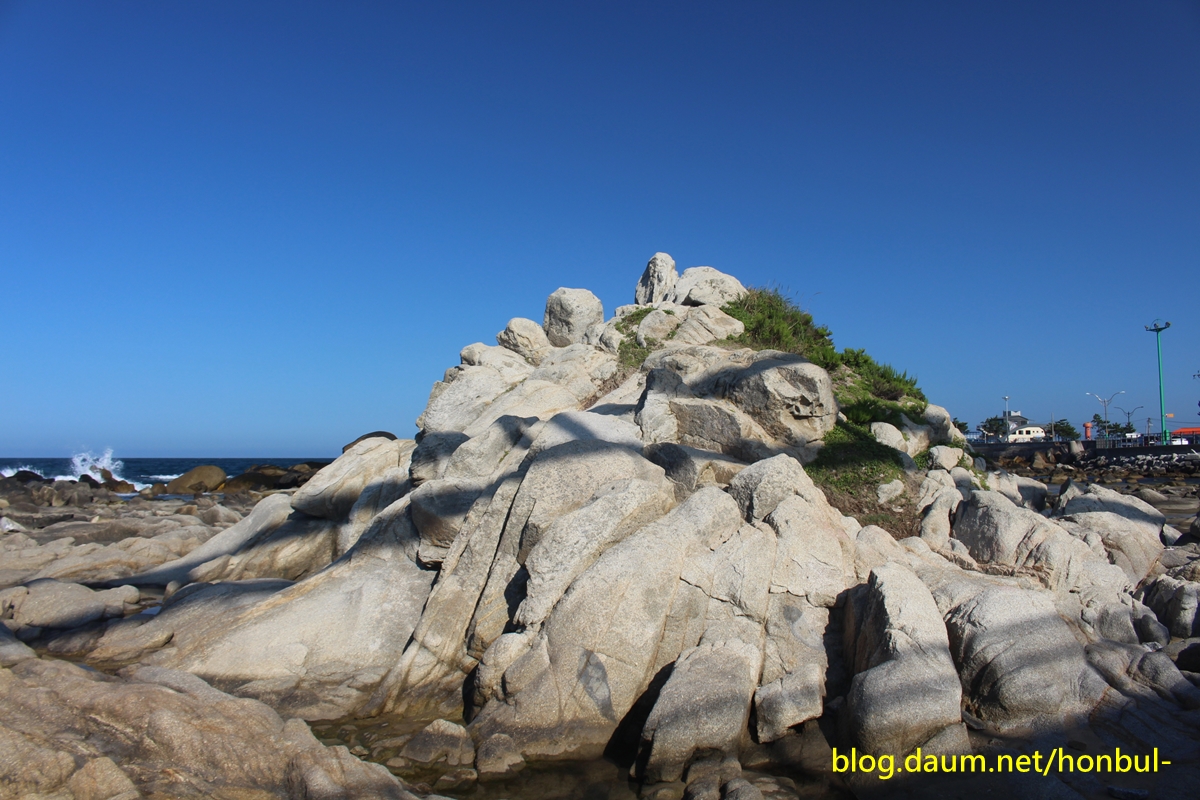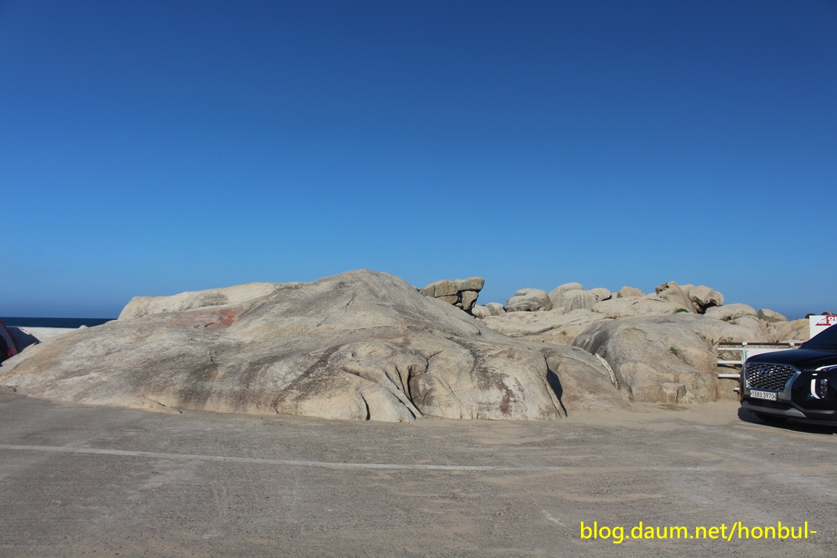 모래사장 끝에 이런 바위가 있어 해수욕장 경계가 된다.