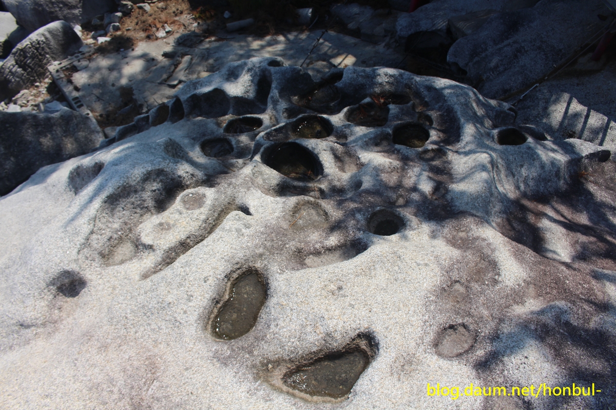 신선바위 한쪽엔 이렇게 신선이 노닐던 발자국이나 오줌을 눈 자국도 보인다.